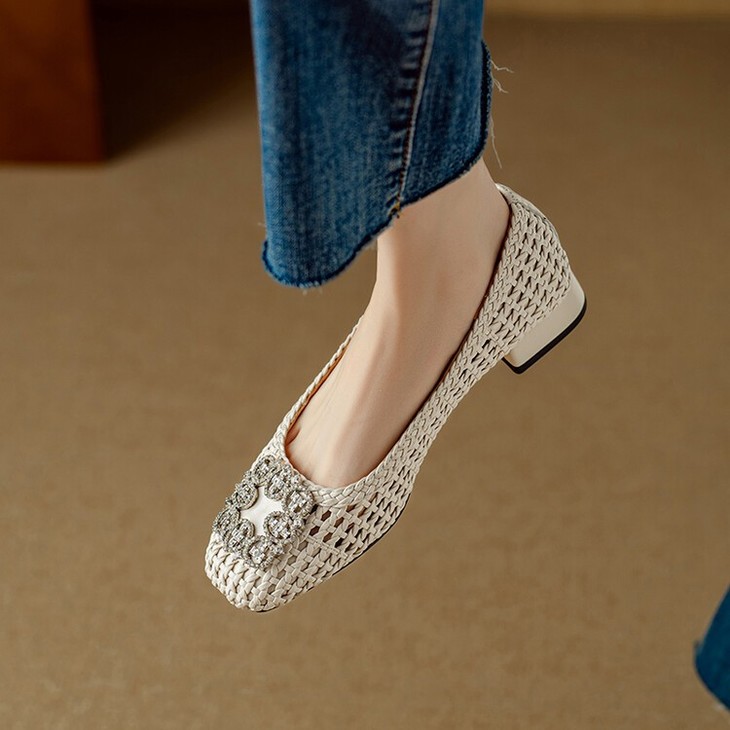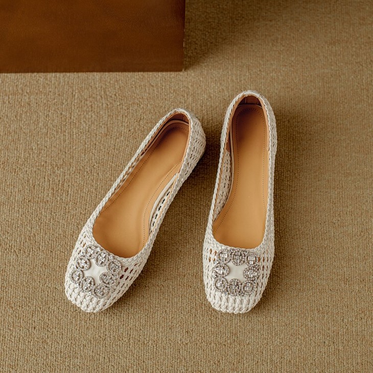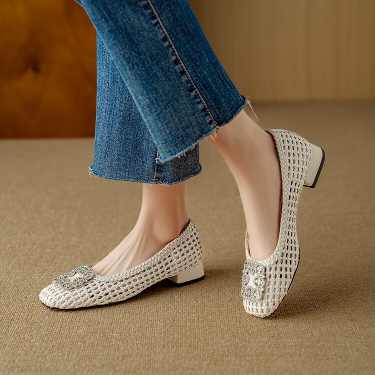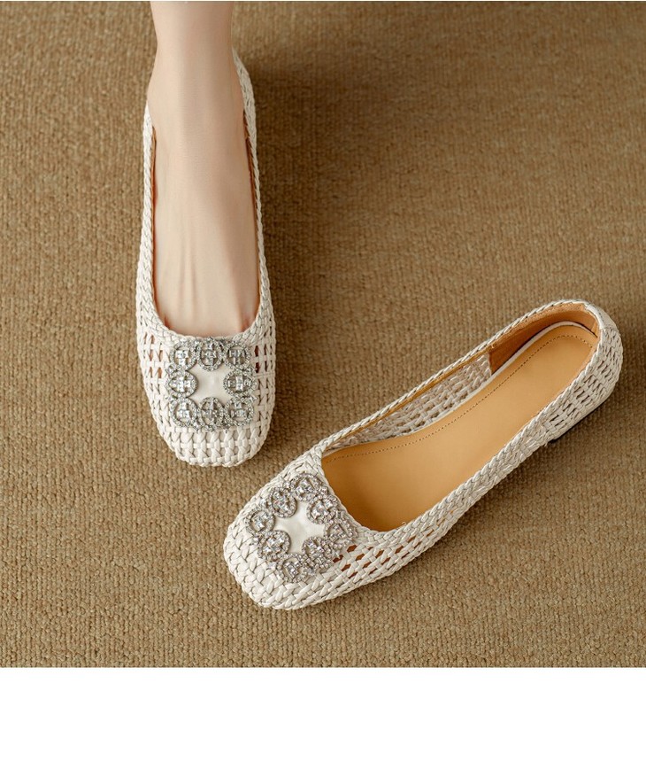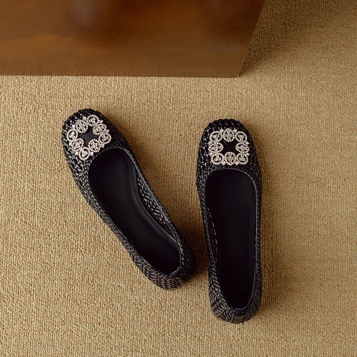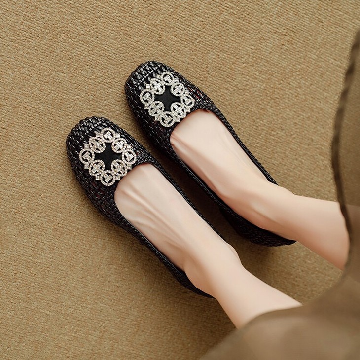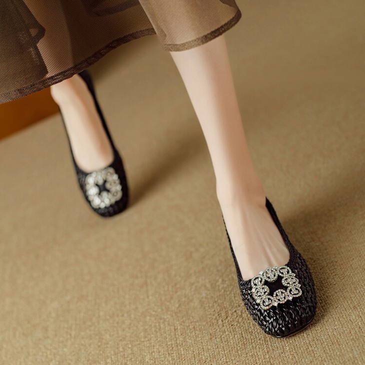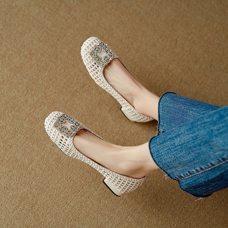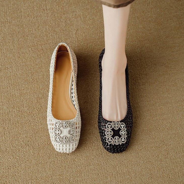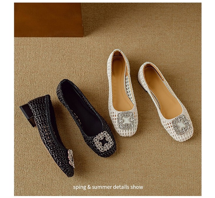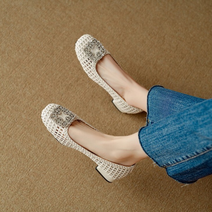 【预售5天】仙女风方头浅口,一脚蹬休闲水钻方头豆豆鞋NJMK&K1025