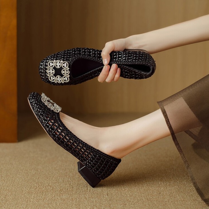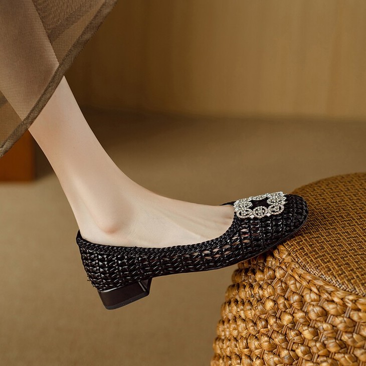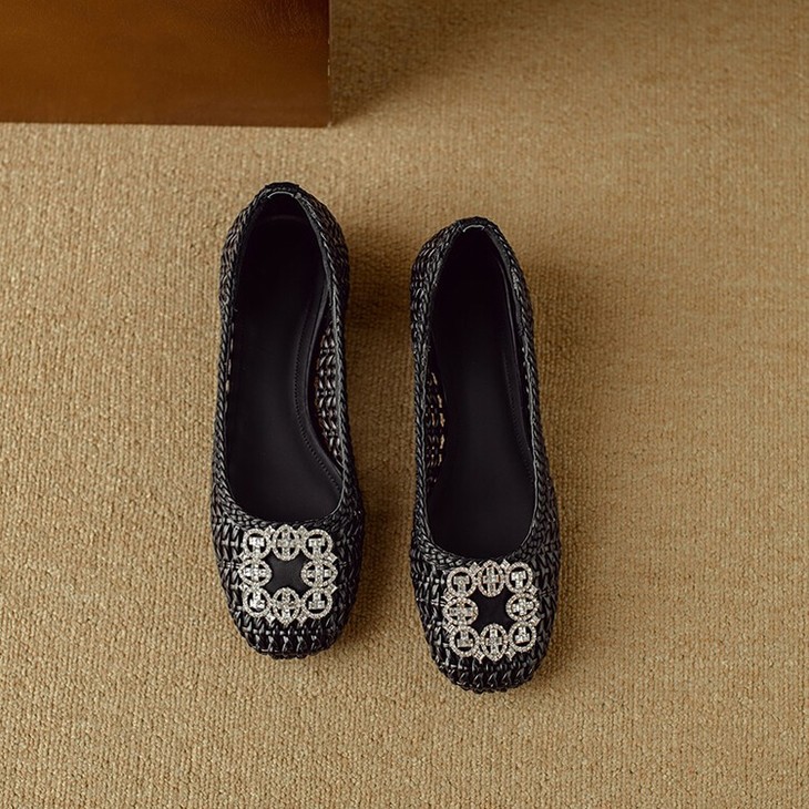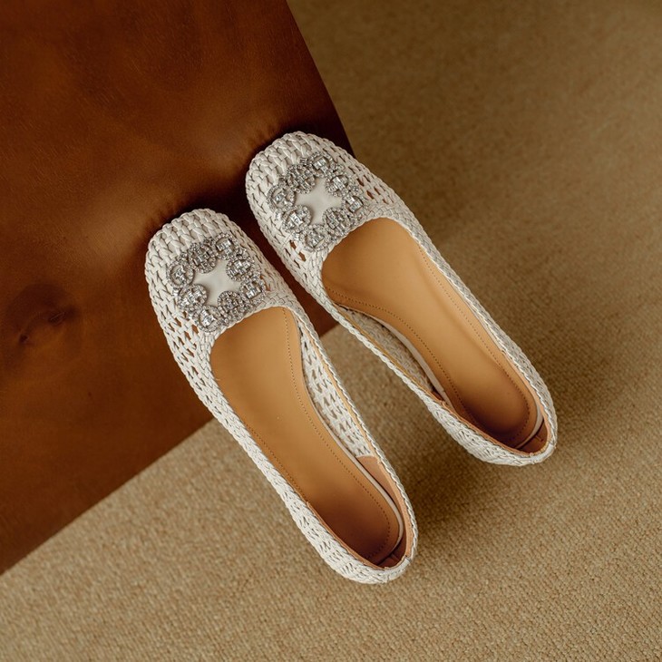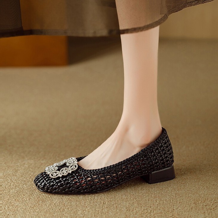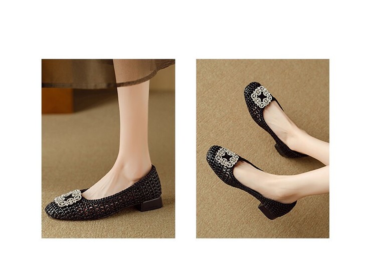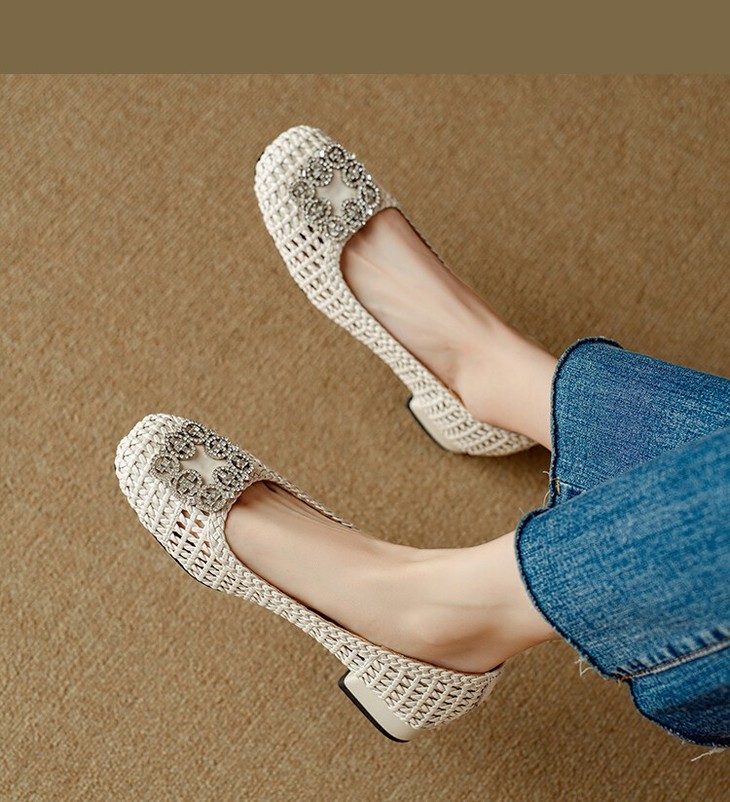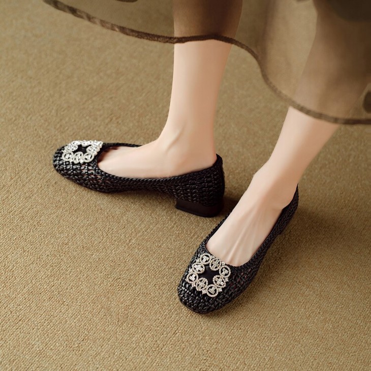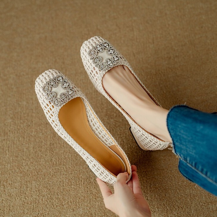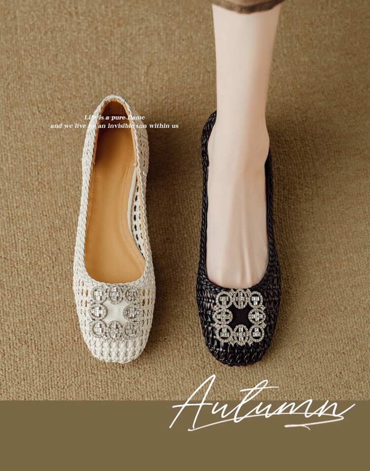 【预售5天】仙女风方头浅口,一脚蹬休闲水钻方头豆豆鞋NJMK&K1025