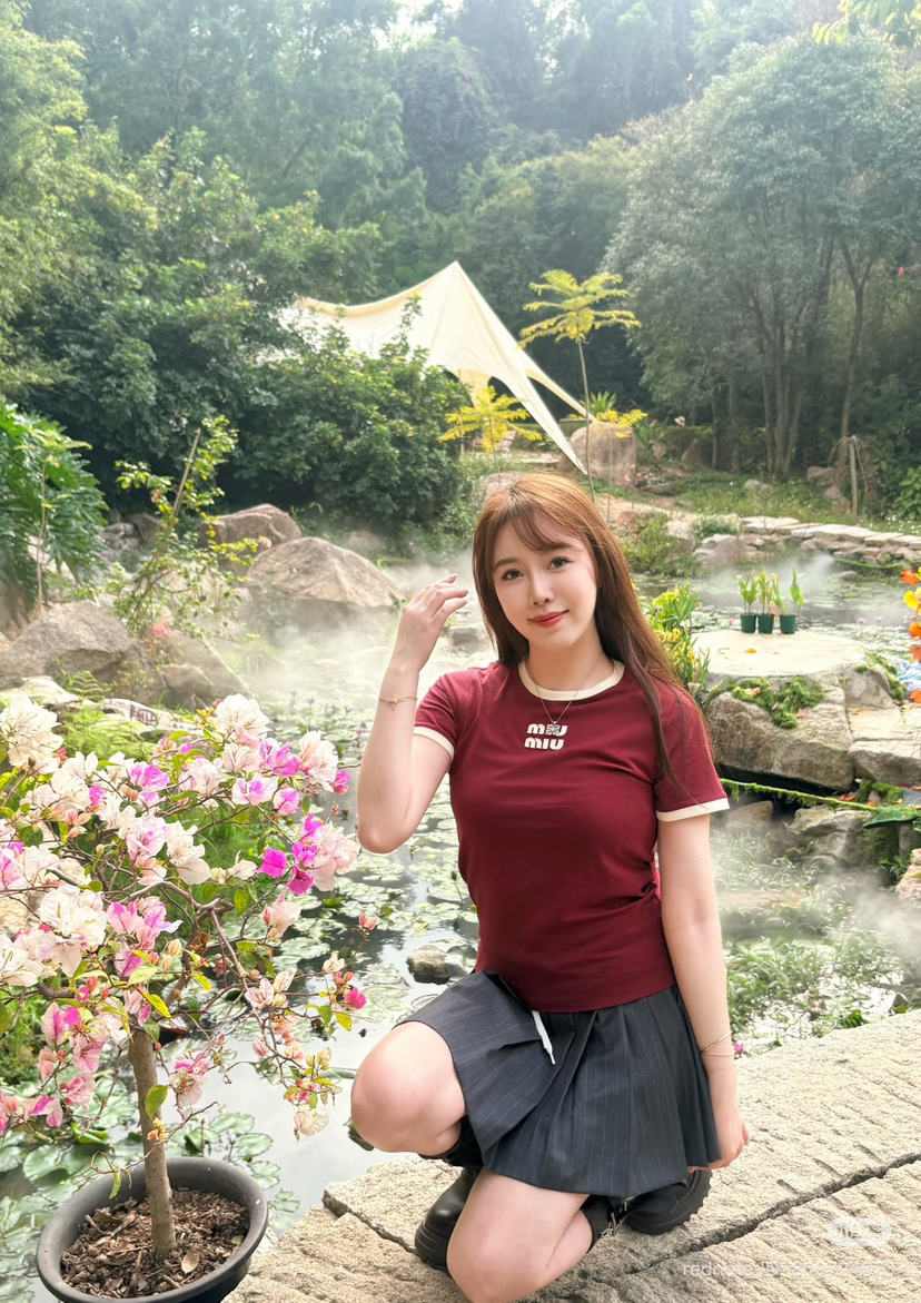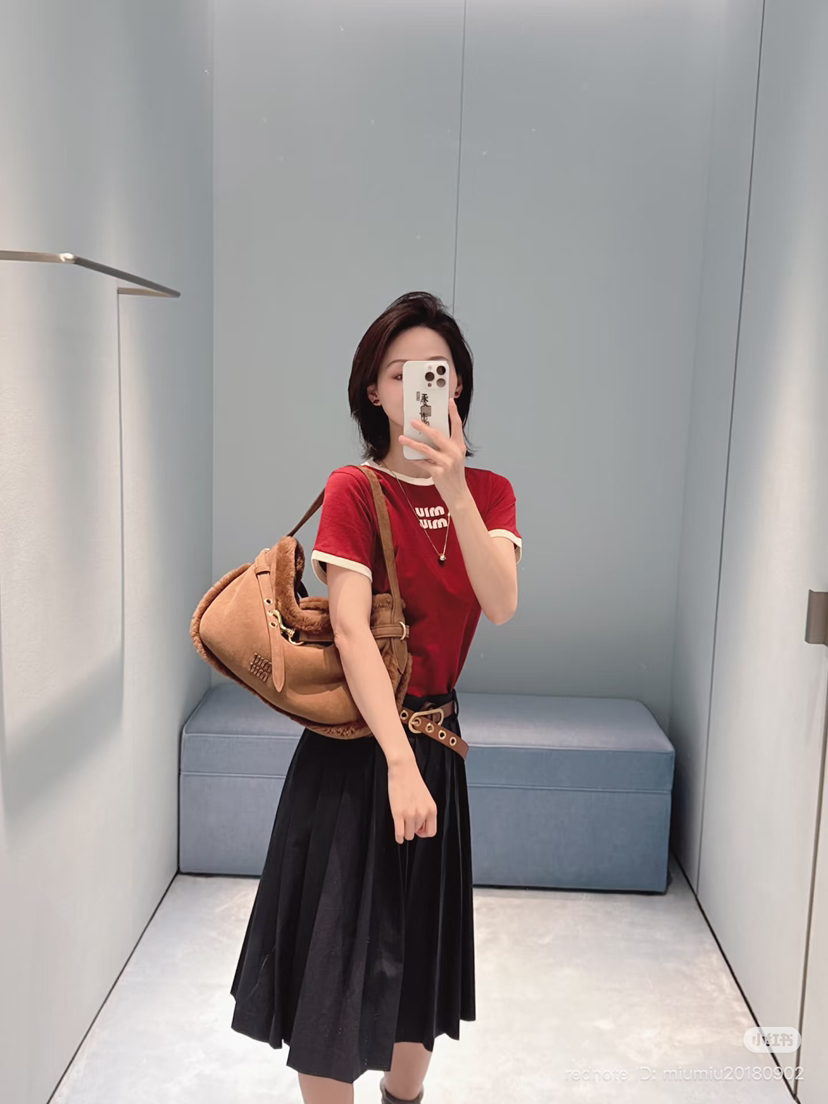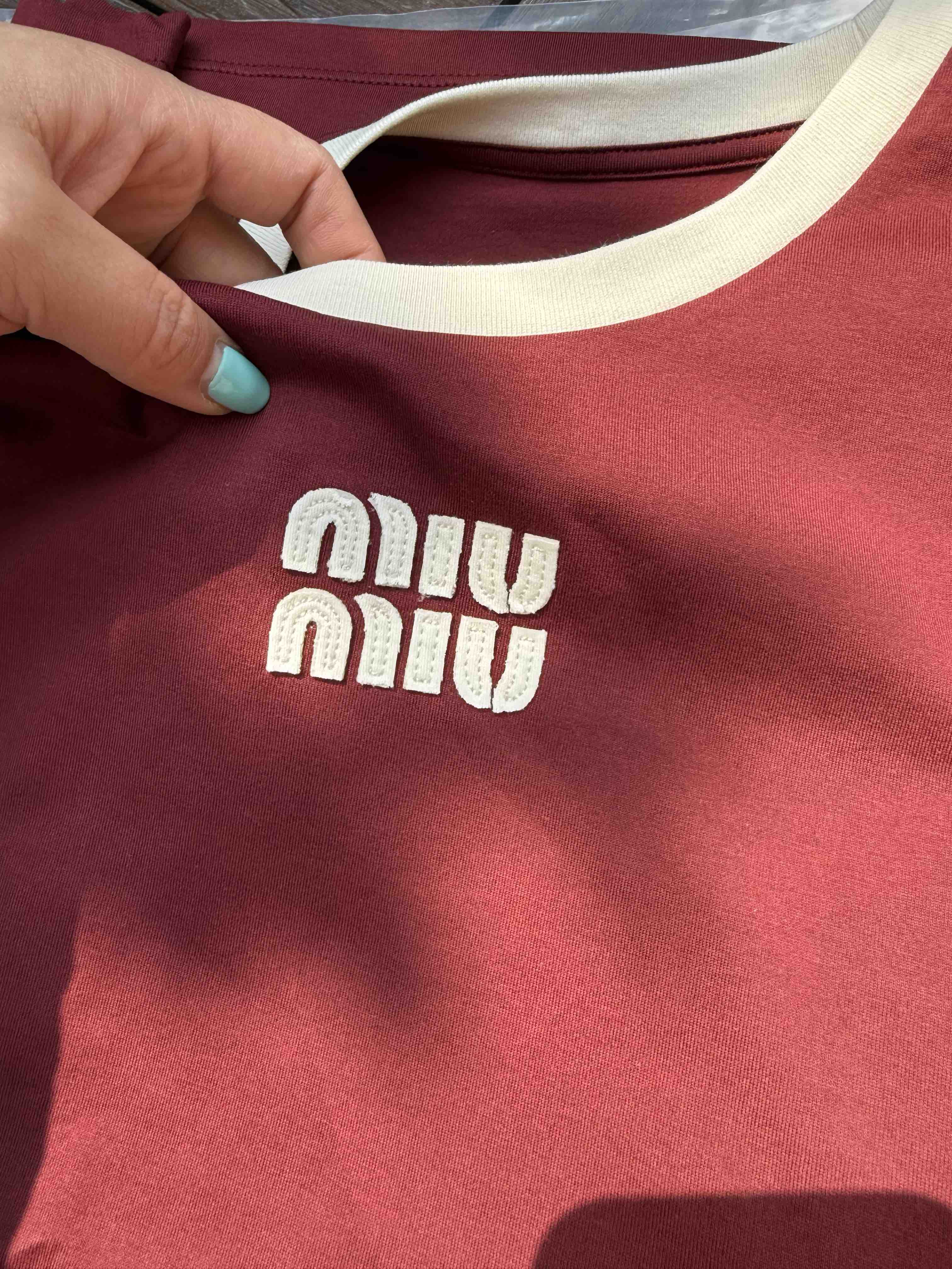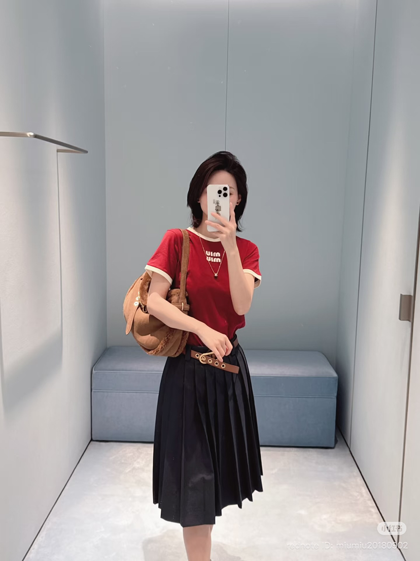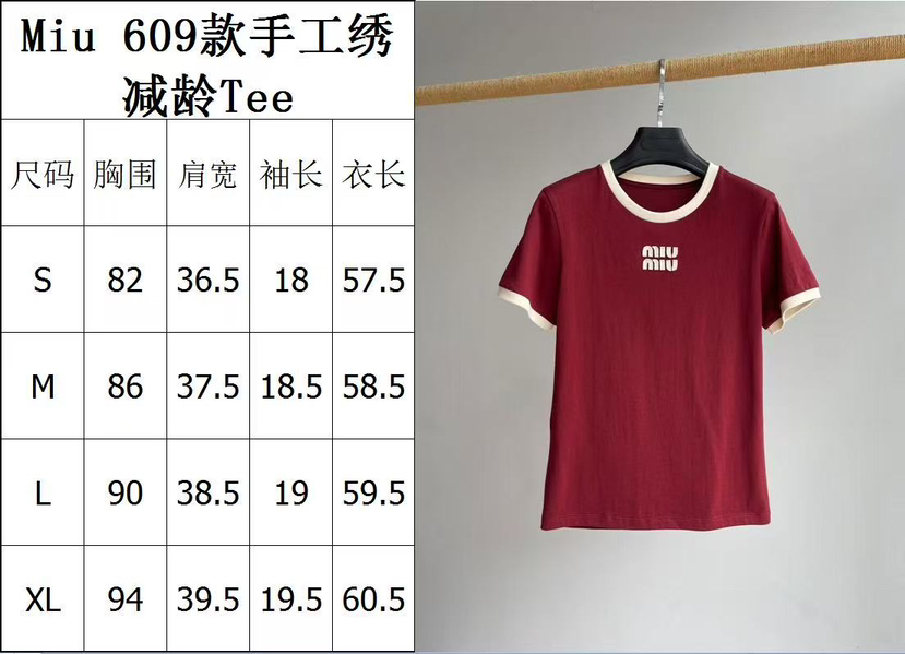 327-10 渠道圆正 miu大爆款 手工绣 红色撞色 基础款 减龄时髦 圆领短袖T恤 167/140我穿XL