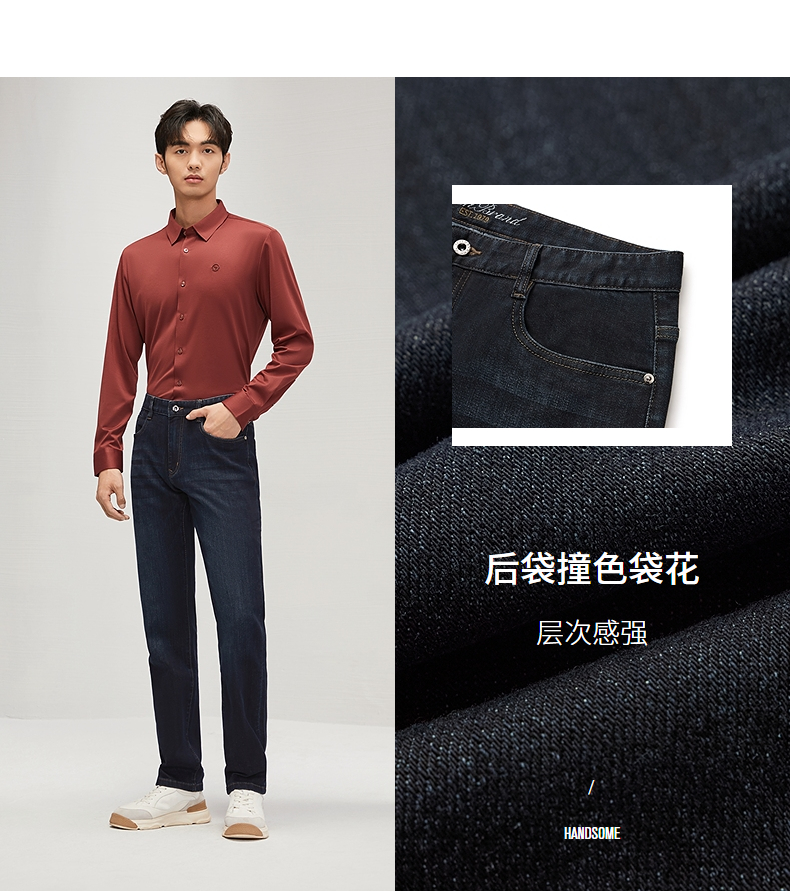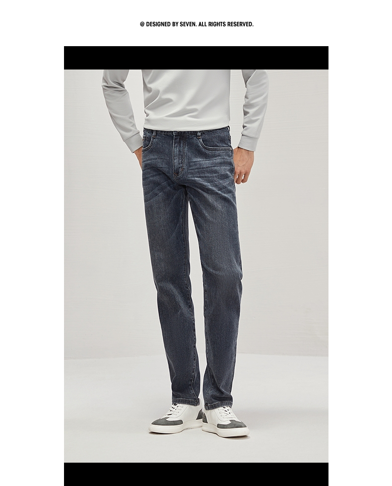【含莱赛尔】柒牌男士牛仔长裤秋季2024新品时尚潮流休闲直筒男裤 127H72770