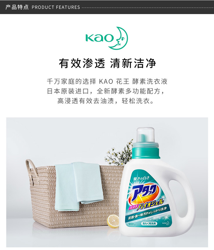 【保税仓】日本Kao 花王 绿色草本清香酵素洗衣液 900克