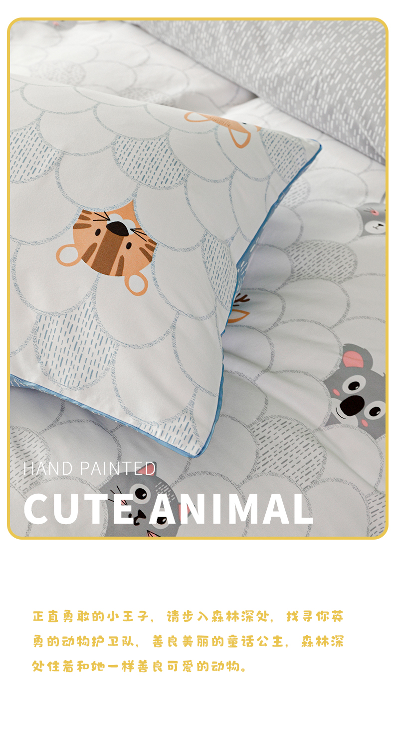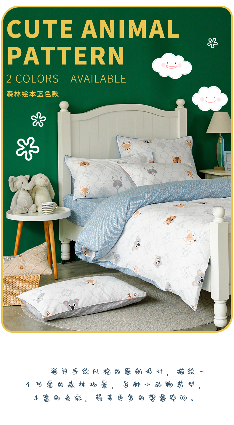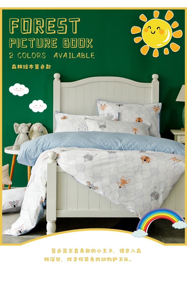 【代发】60支磨毛 森林绘本灰/蓝 蓝铂儿童四件套纯棉(尺寸为被罩尺寸)