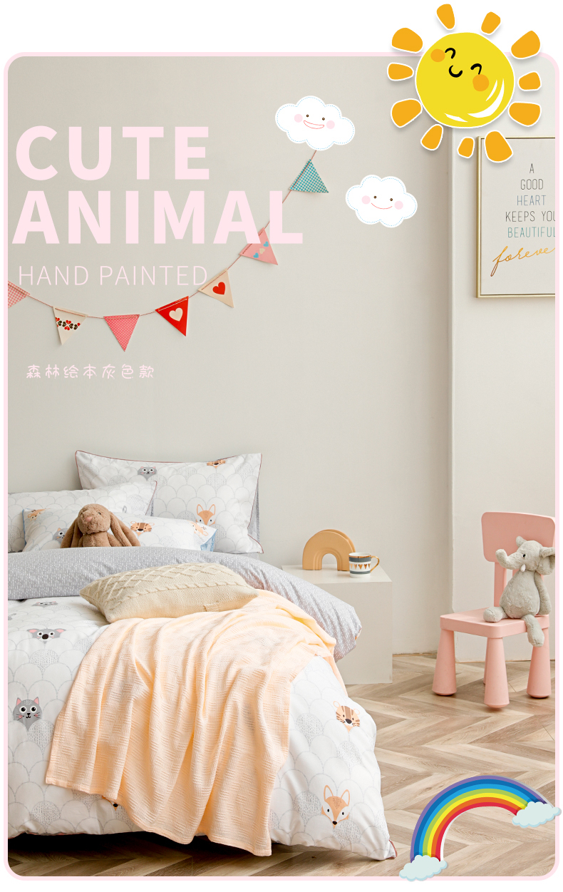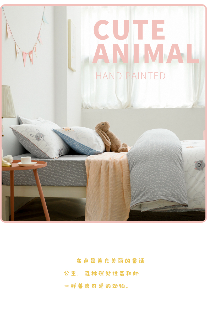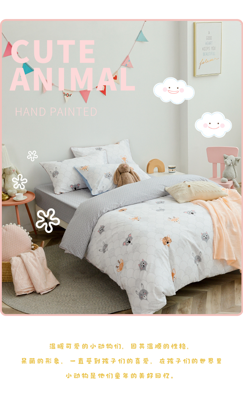 【代发】60支磨毛 森林绘本灰/蓝 蓝铂儿童四件套纯棉(尺寸为被罩尺寸)