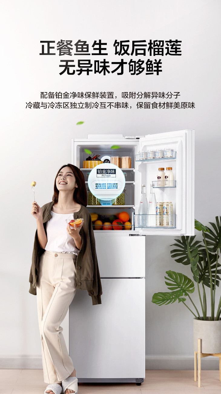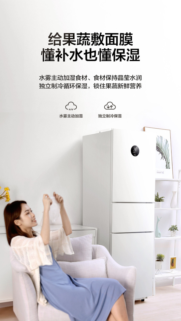 【家用电器】【美的冰箱】Midea/美的BCD-230WTPZM(E) 三门变频智能风冷家用电冰箱一级能效