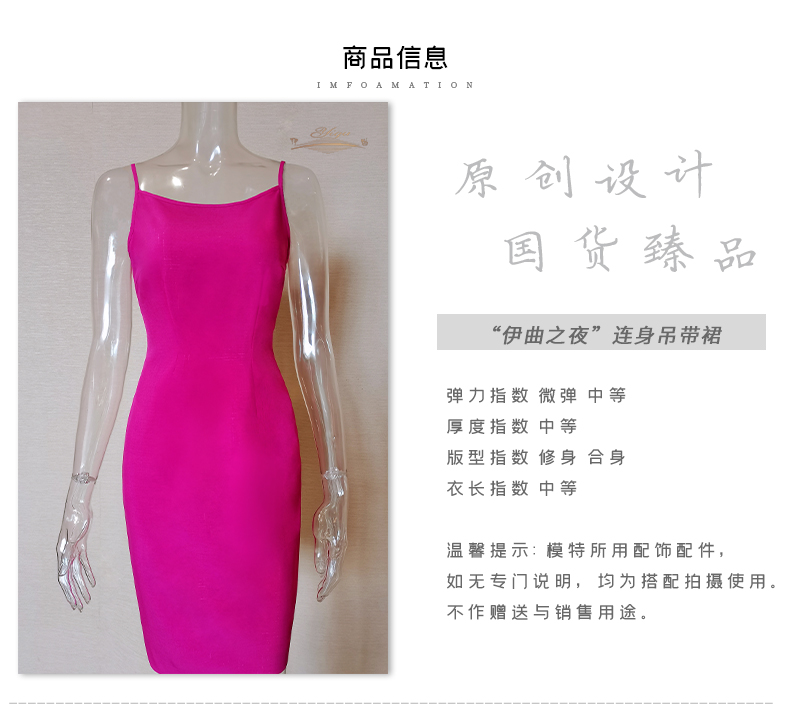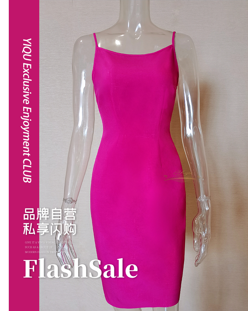 【断码】M/XXL码•YIQU |“伊曲之夜”吊带裙(玫红)P