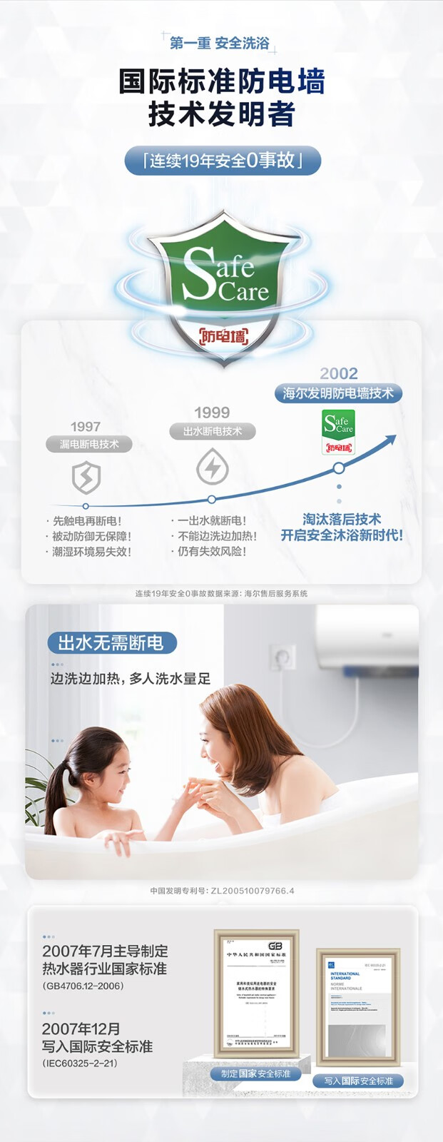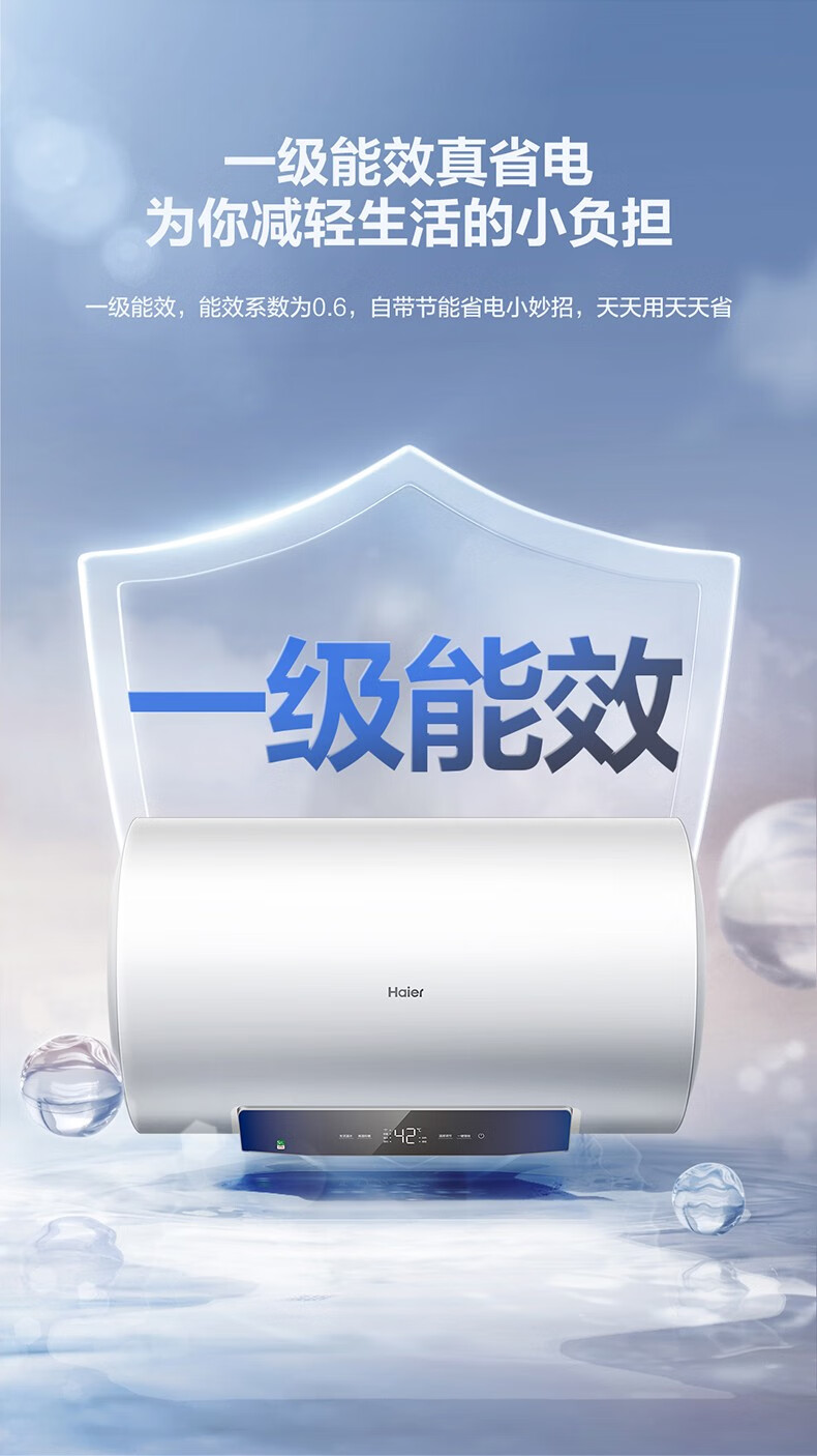 海尔(Haier)电热水器一级能效安全防电墙防干烧金刚三层胆防超压储水式WIFI 80L 3000W EC8001-MC3U1