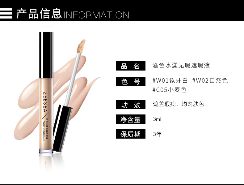 [遮瑕液]【到手价13.3元丨39.9元任选3件】ZEESEA滋色水漾无瑕遮瑕液3g( 任选3件,拍下立减)