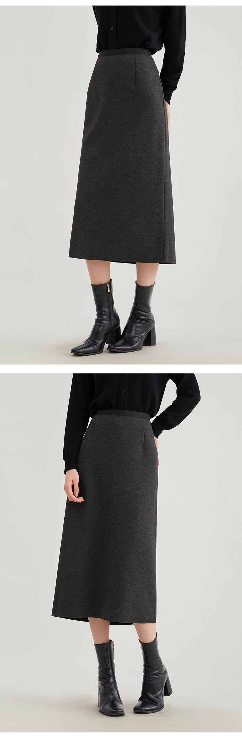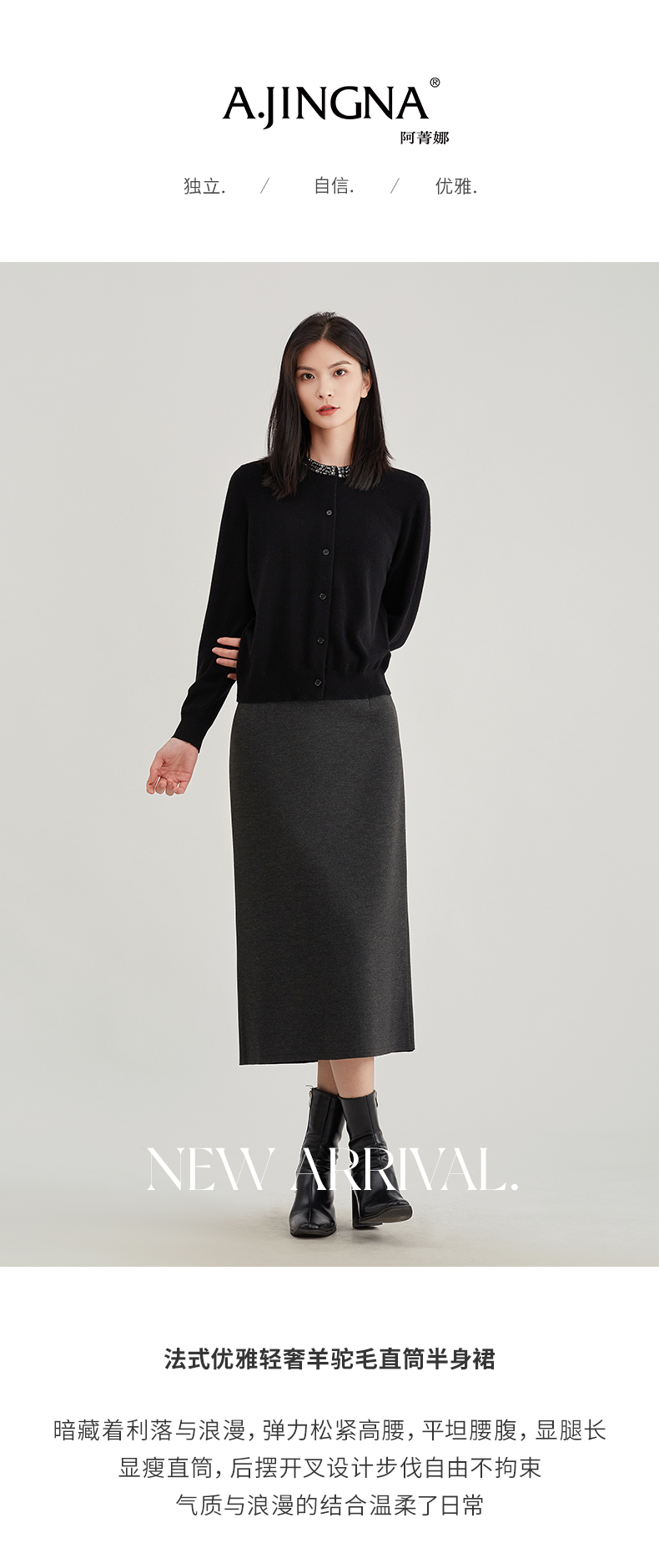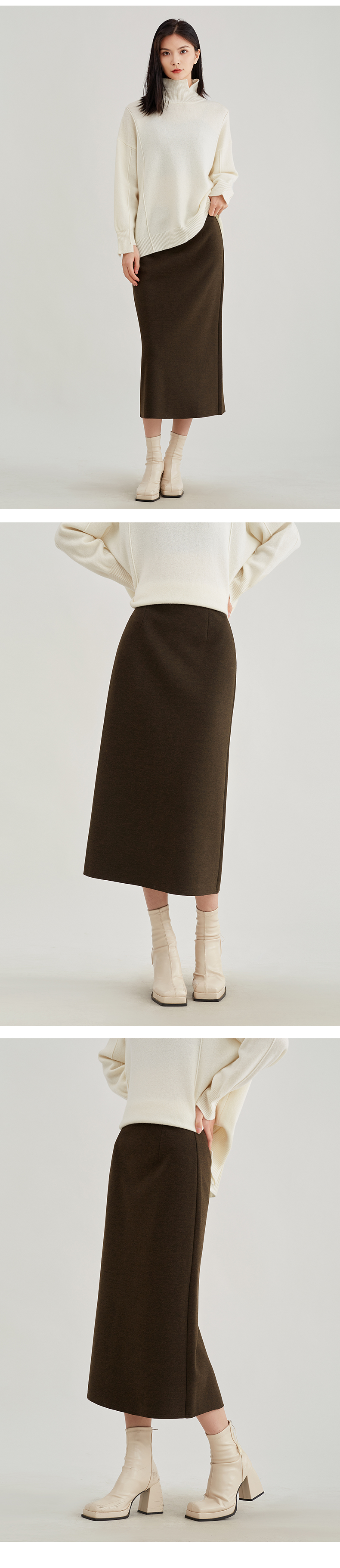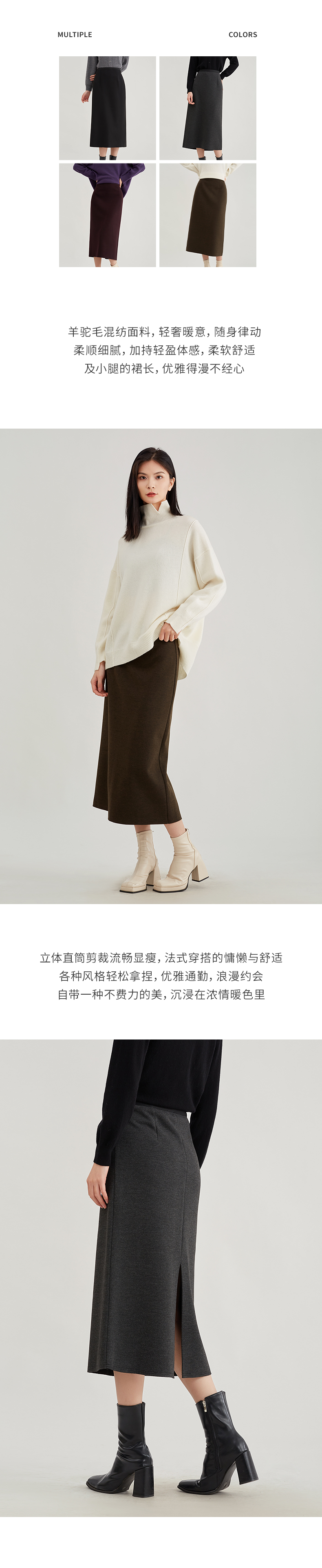 【浪漫气质】阿菁娜法式优雅轻奢羊驼毛直筒半身裙F29D213030