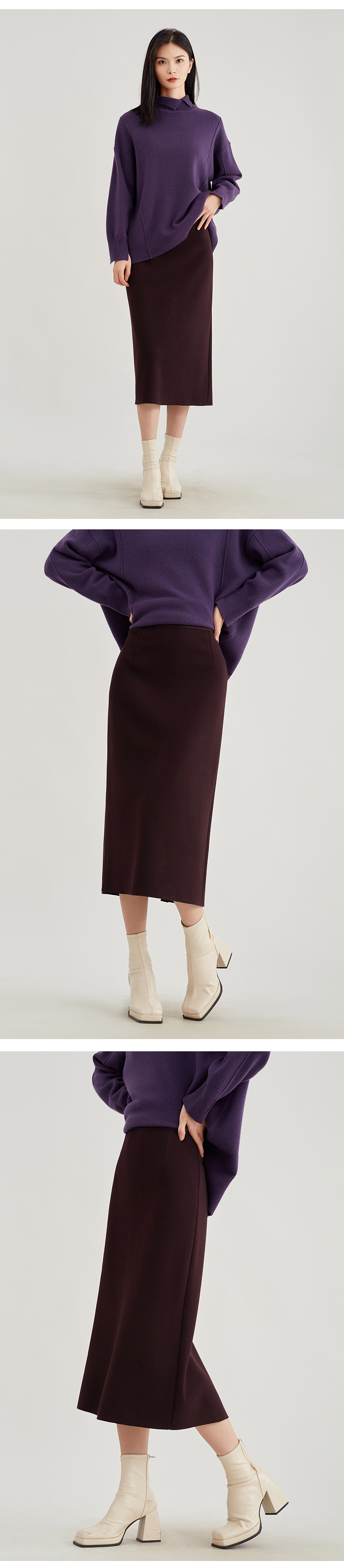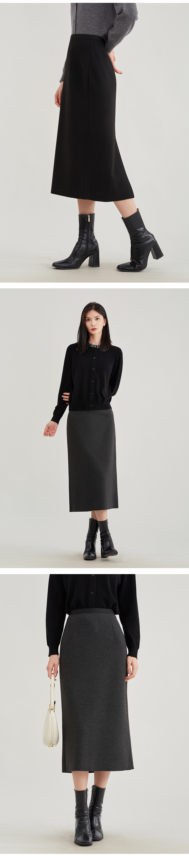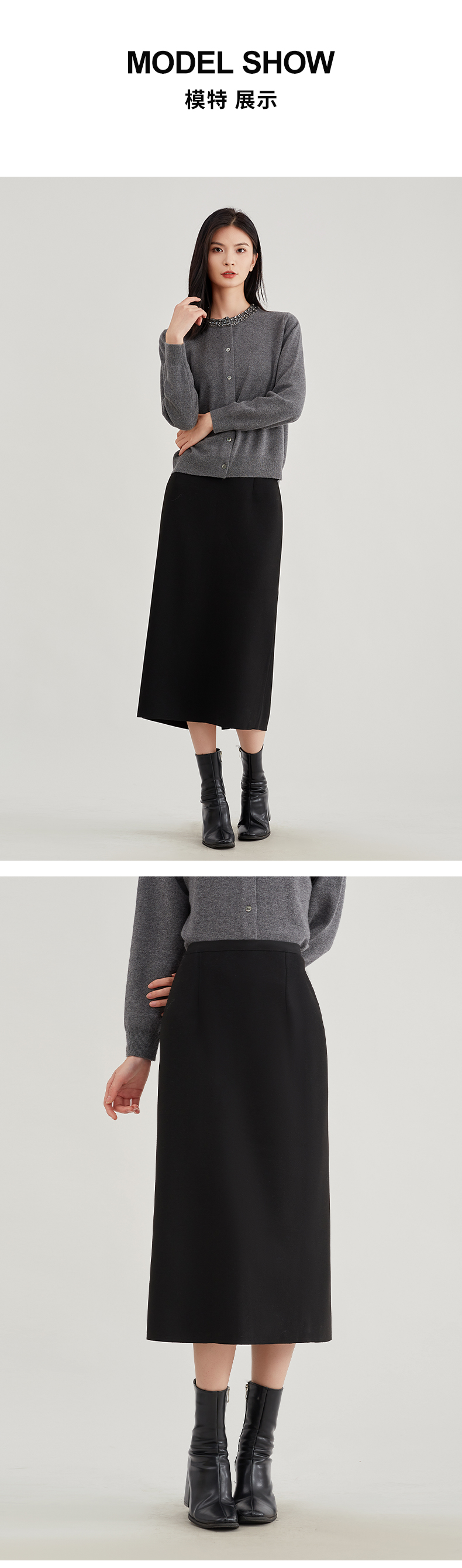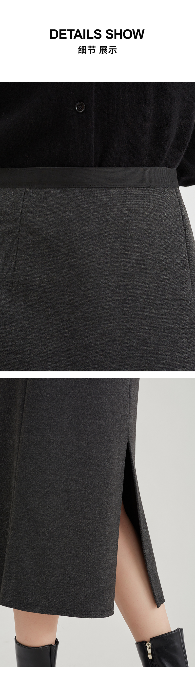 【浪漫气质】阿菁娜法式优雅轻奢羊驼毛直筒半身裙F29D213030