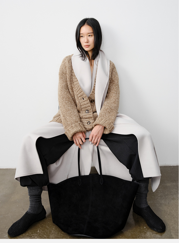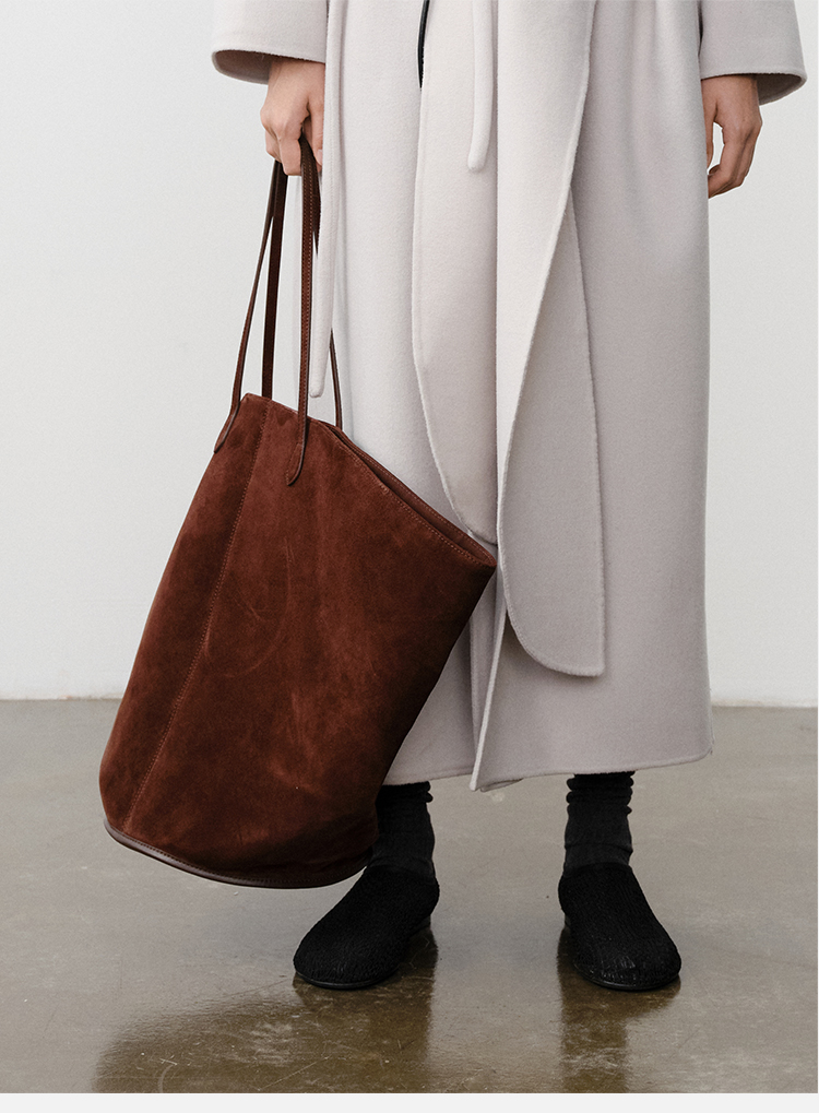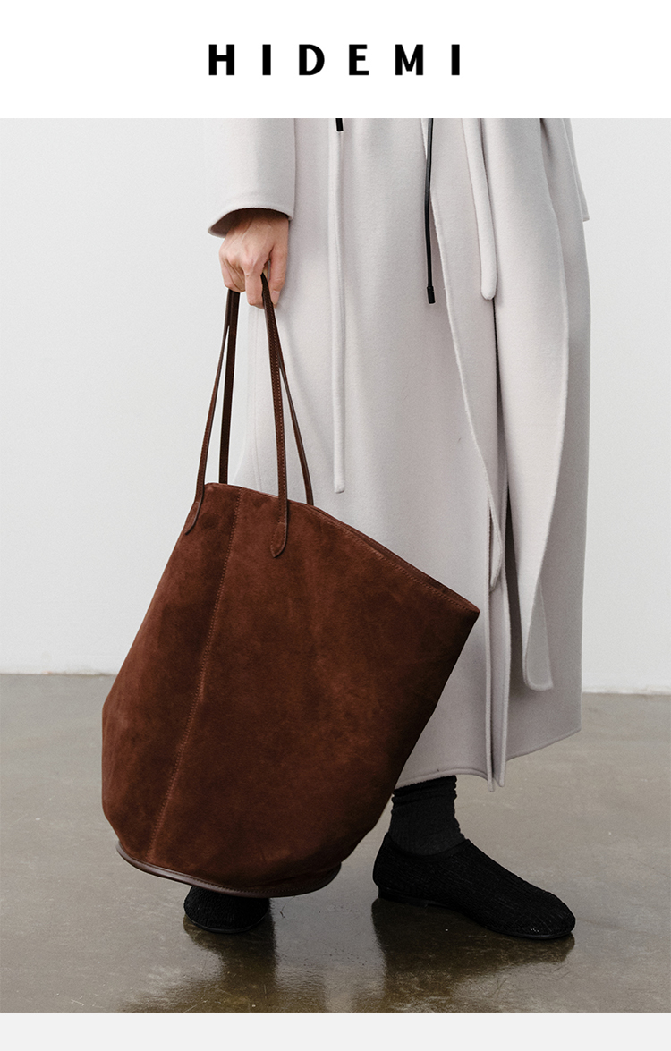 HIDEMI 麂皮VASE TOTE艺术感花瓶托特包 深棕色/黑色