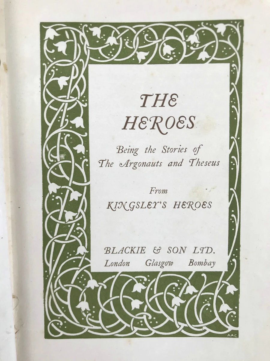 约20世纪早期 查尔斯·金斯利《阿尔戈与忒修斯英雄的故事》 3幅彩色插图 漆布精装32开