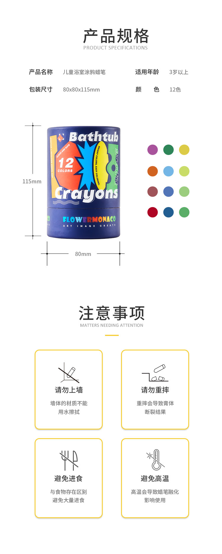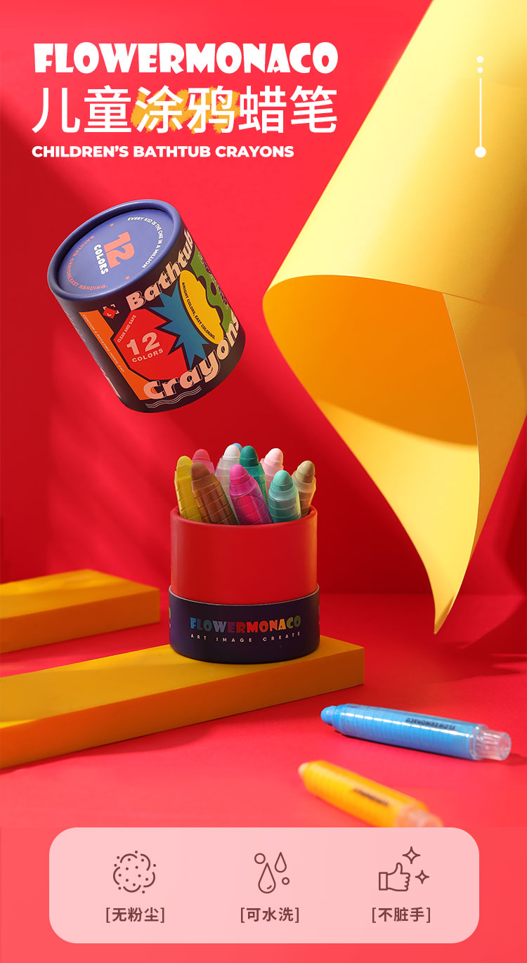花芽FM600203儿童浴室涂鸦蜡笔12色 Bathtub graffit Crayons