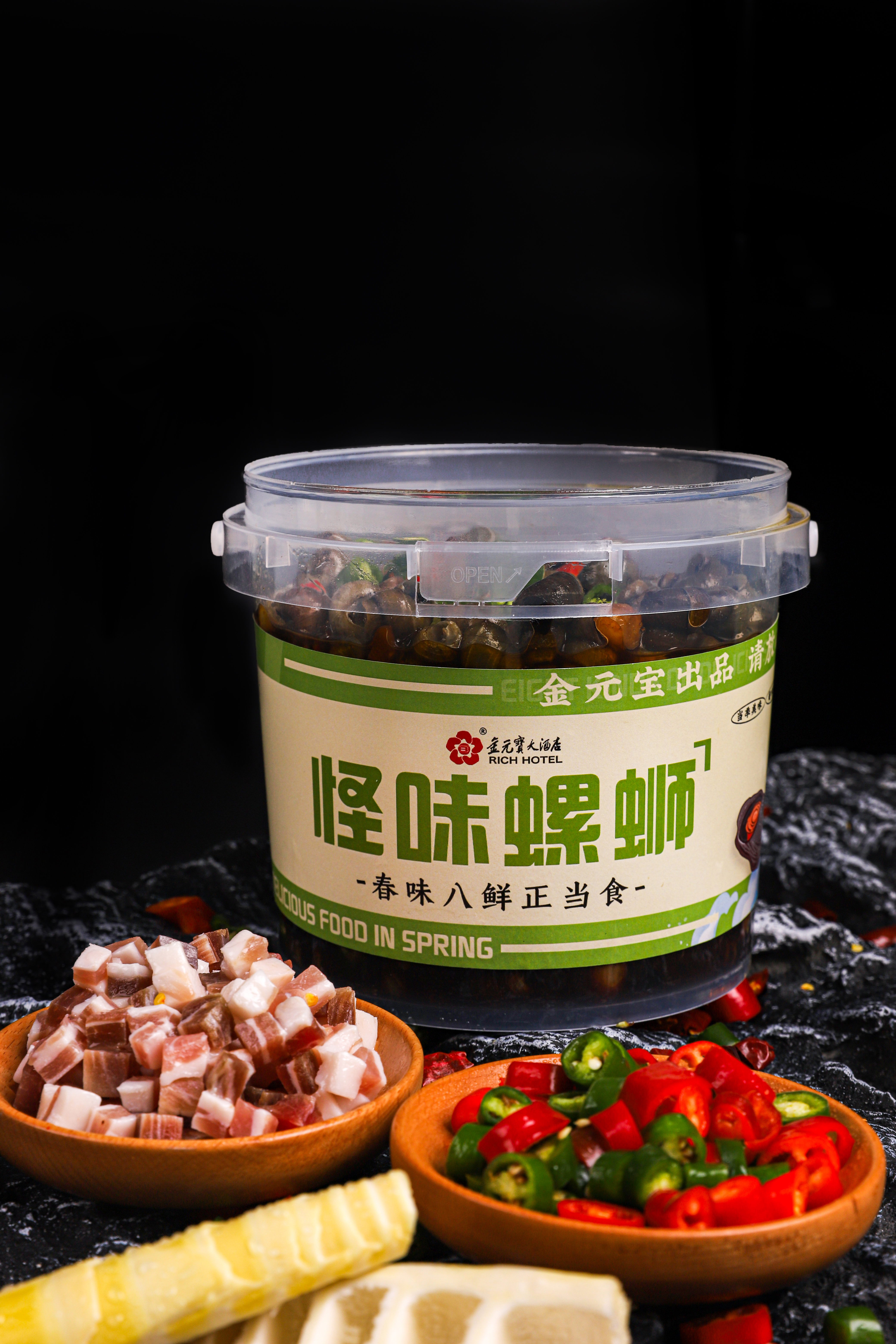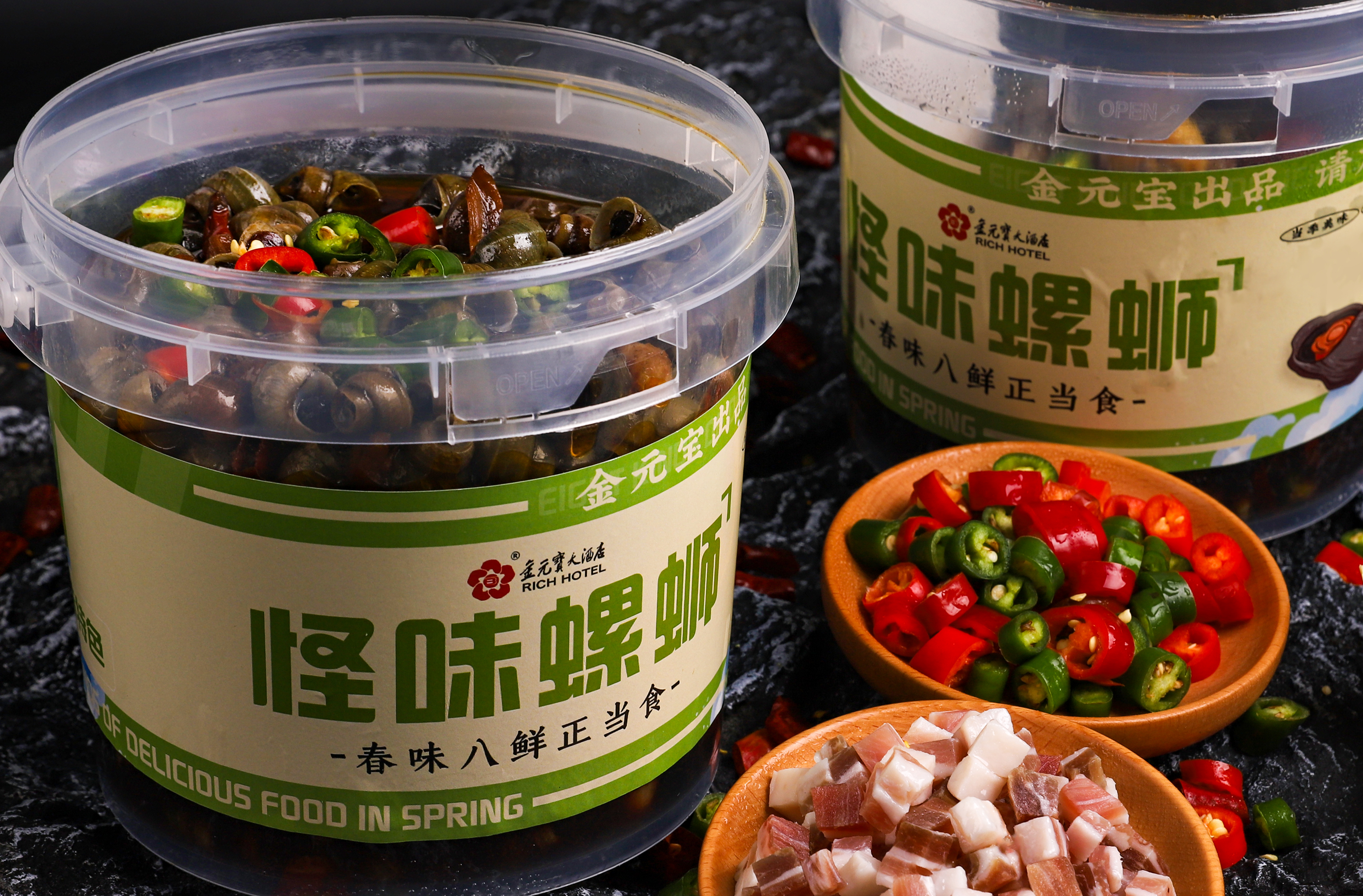 怪味螺蛳选用常州芙蓉螺蛳,同样是螺蛳,为什么芙蓉的就特别好吃呢?奥妙就在螺蛳的“一日三餐”里。据芙蓉农林站的水产专家刘志良介绍,芙蓉镇是远近闻名的鱼种繁殖镇,4500亩水面每年养殖鱼种2000多万尾。鱼种每天必须喂食豆浆,自然繁殖在培育鱼种水域里的螺蛳也“靠福”吃上了豆浆。久而久之,芙蓉螺蛳就以壳薄、肉厚、鲜嫩而远近闻名。