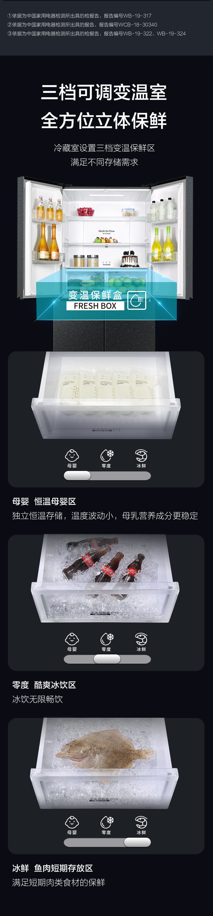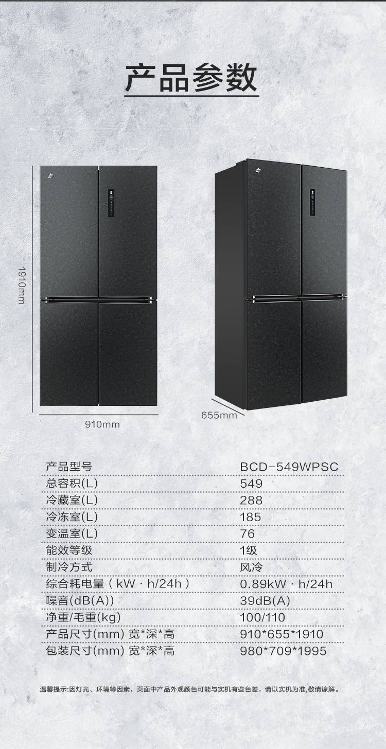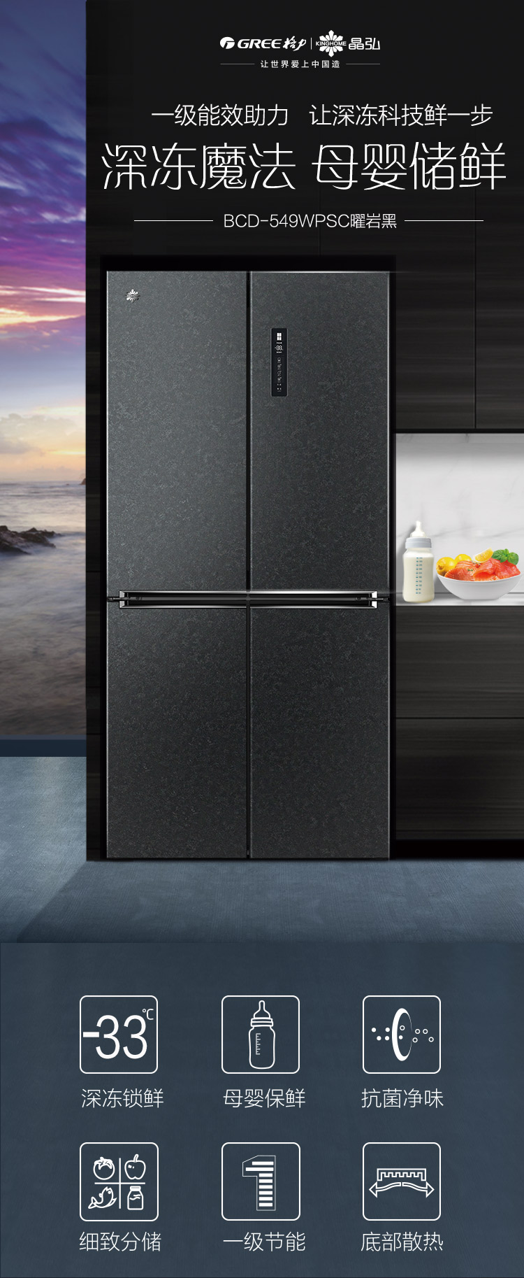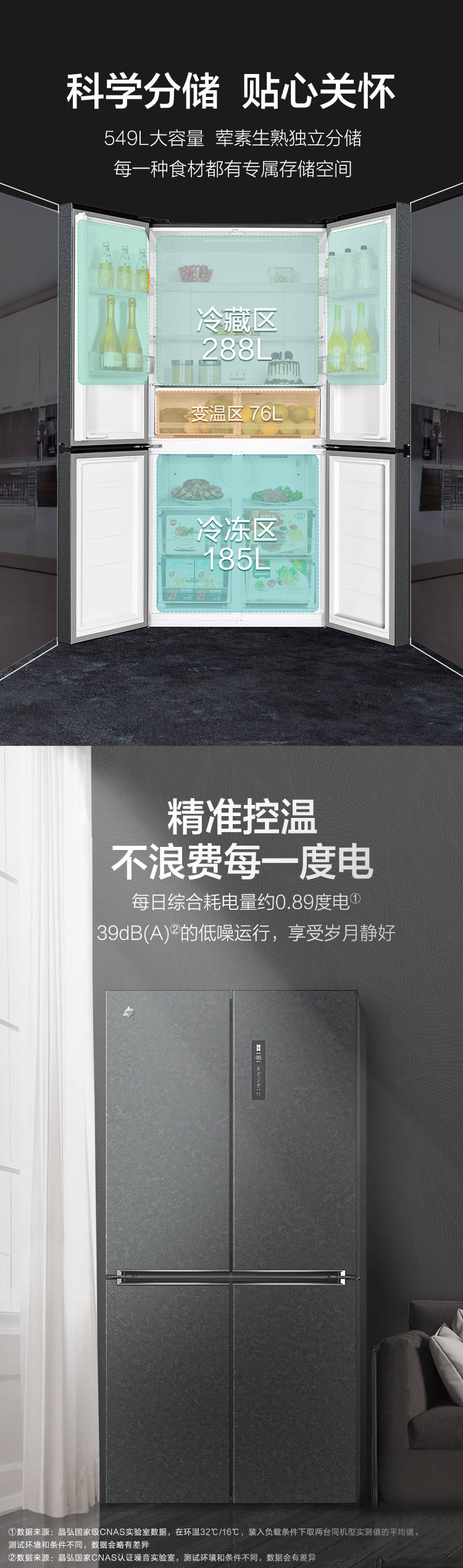 晶弘·四门对开冰箱 549L BCD-549WPSC/曜岩黑