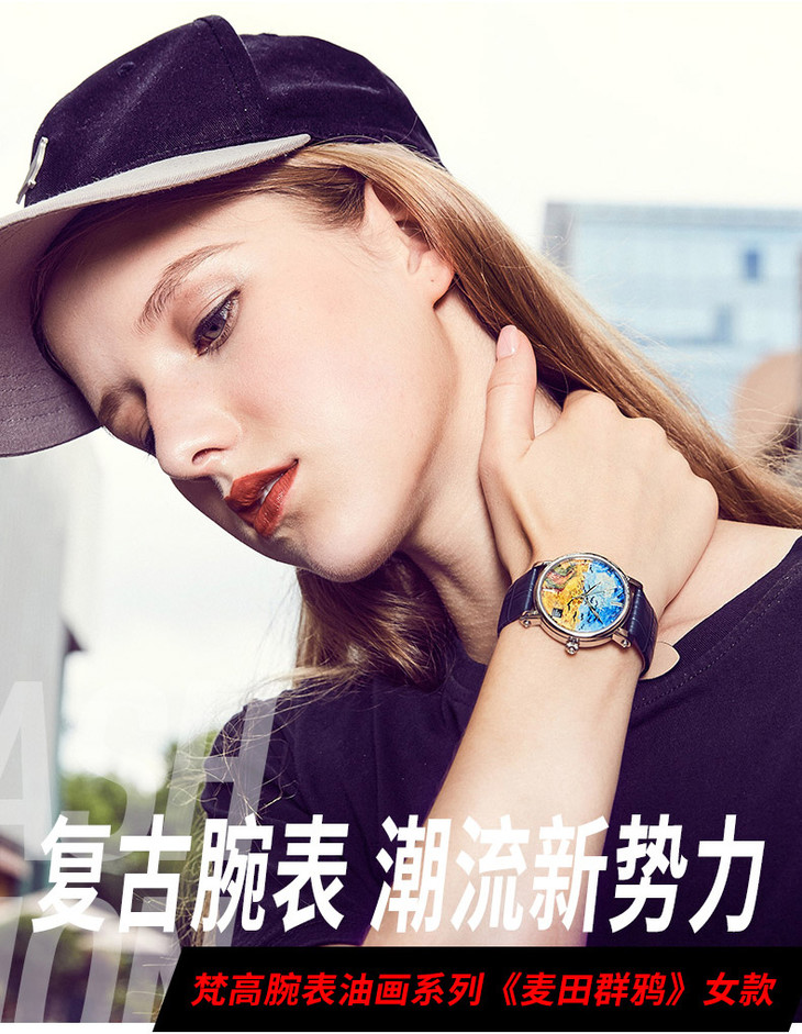 Van Gogh梵高瑞士手表油画系列《麦田群鸦》原装进口荷兰品牌复古潮牌石英表明星同款情侣表