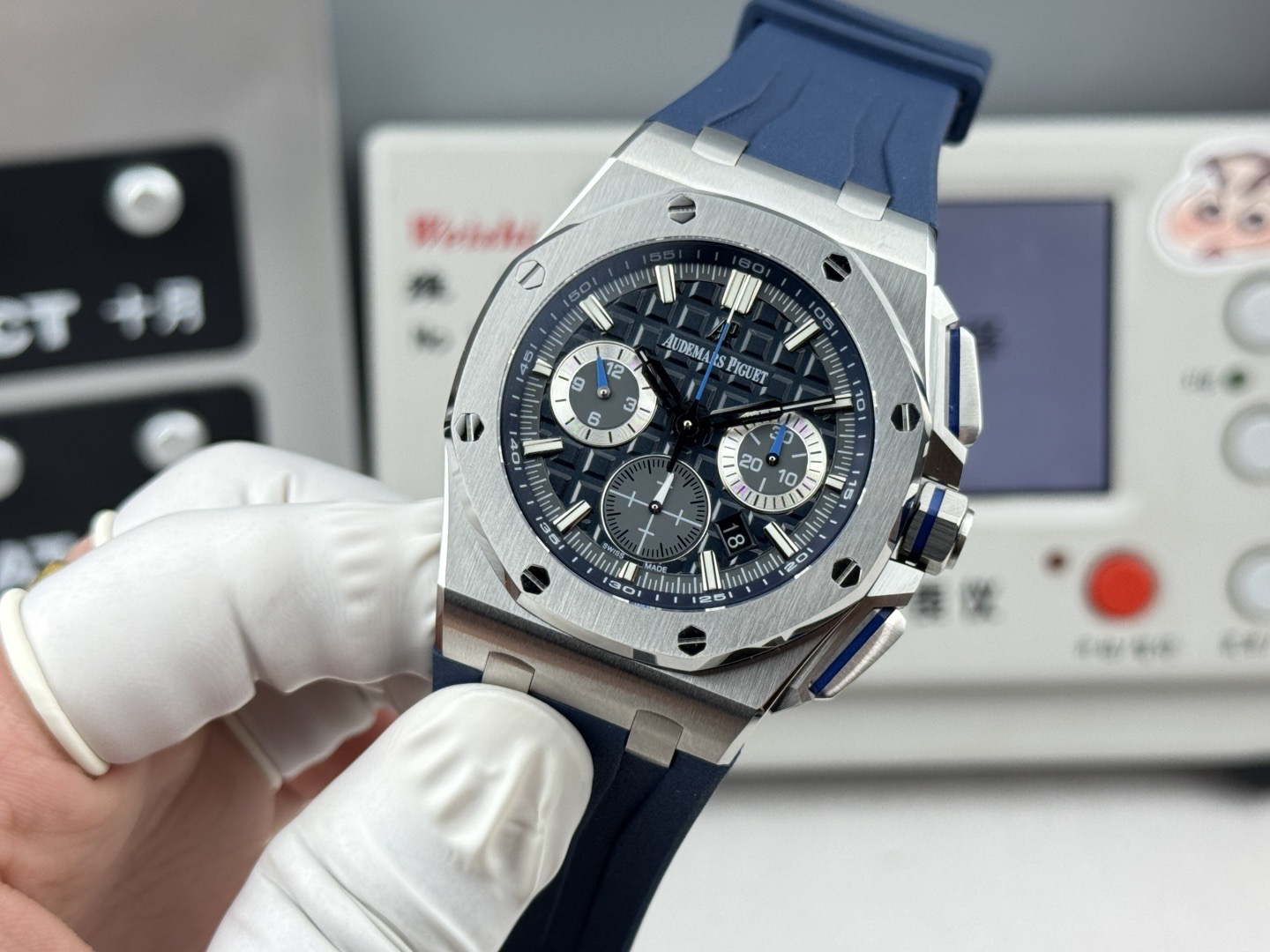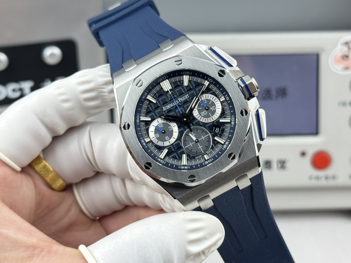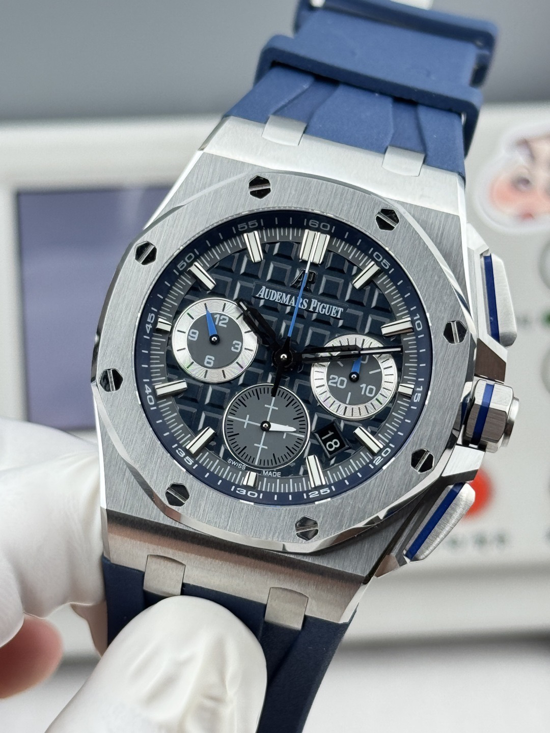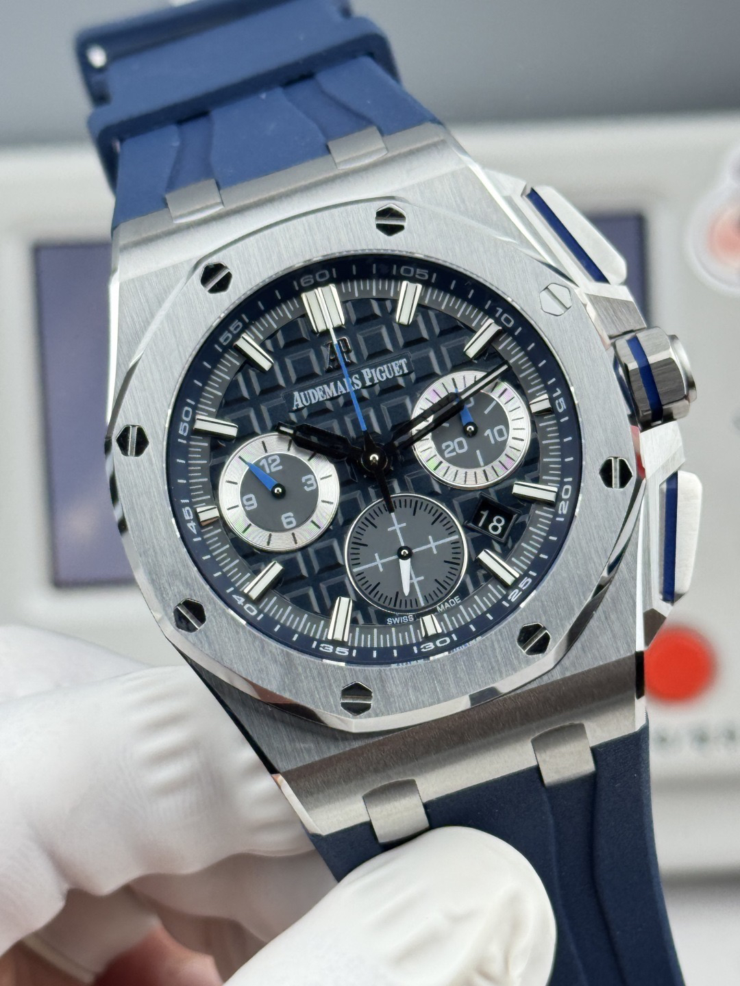 1、正品原版开模,新开模43 毫米表壳(市场版本44毫米,是套用旧款26400的壳)采用全新设计、更符合人体工学的表壳、更精致的表壳细节,它具有较大的抛光倒角, 尺寸 43MM~15.6MM, 43毫米宽的表壳经过精心修饰,以容纳直径稍大的新机芯
