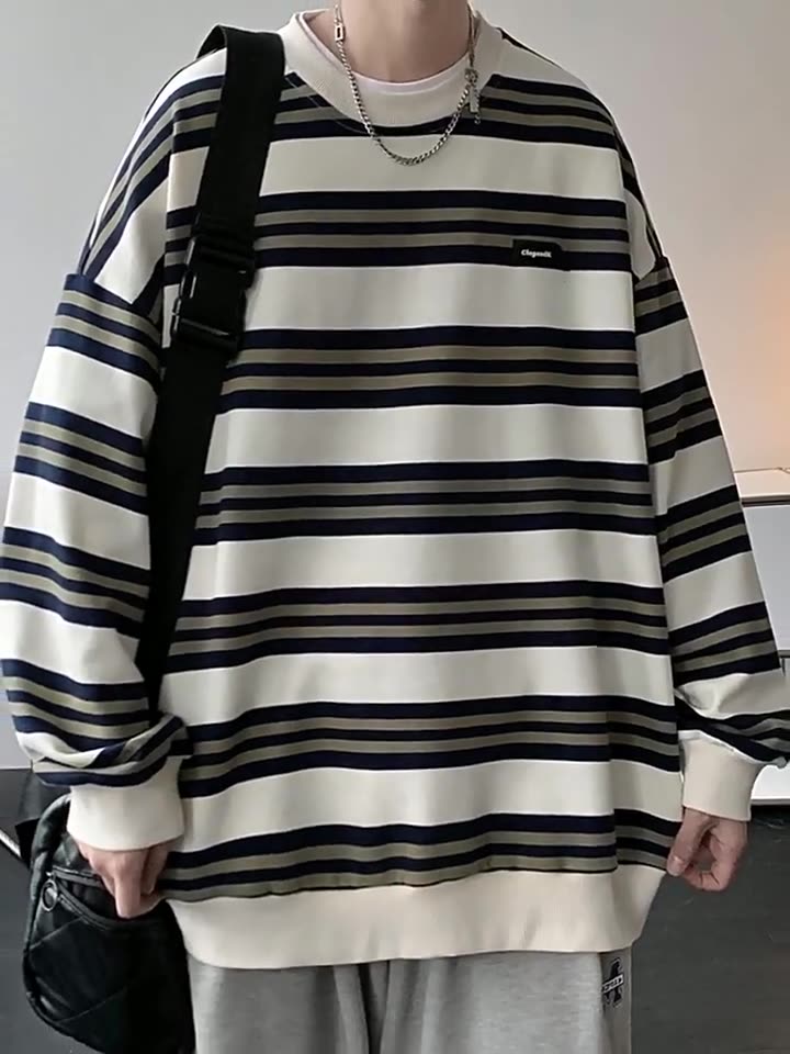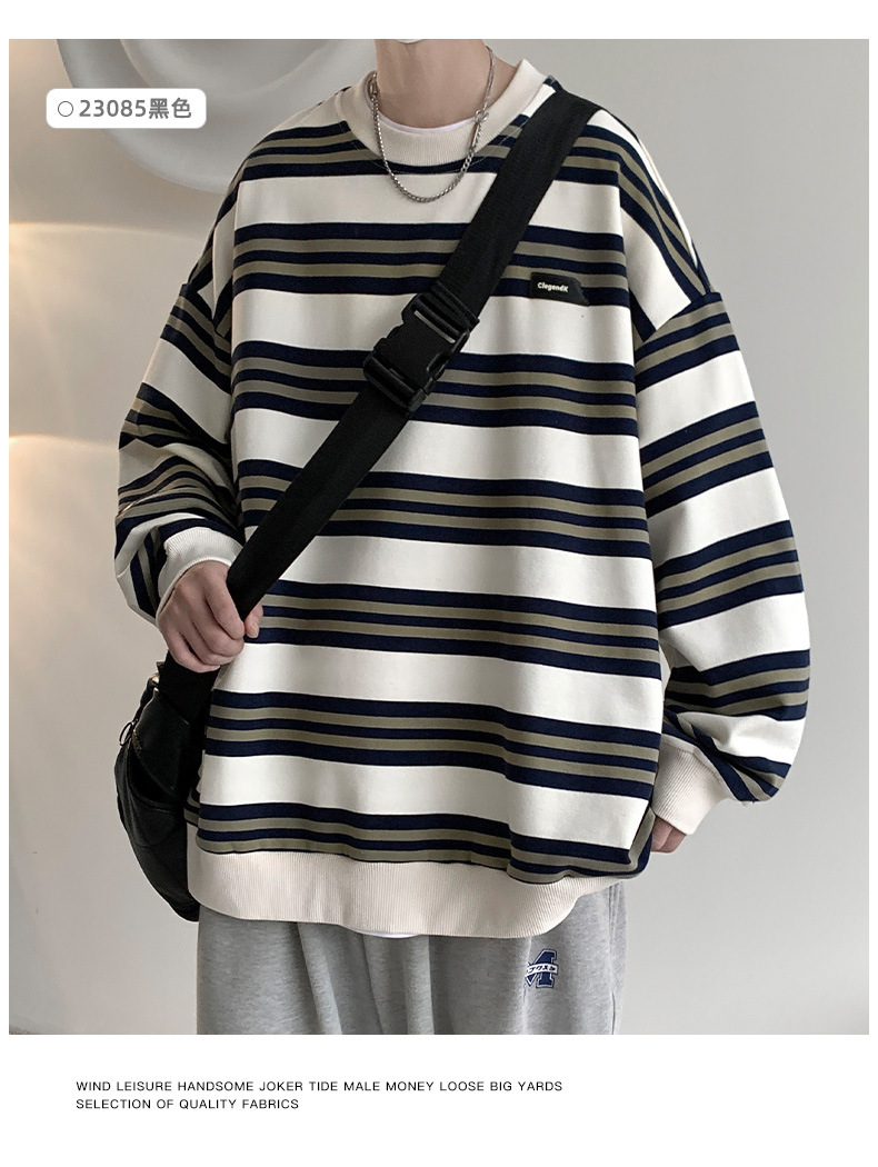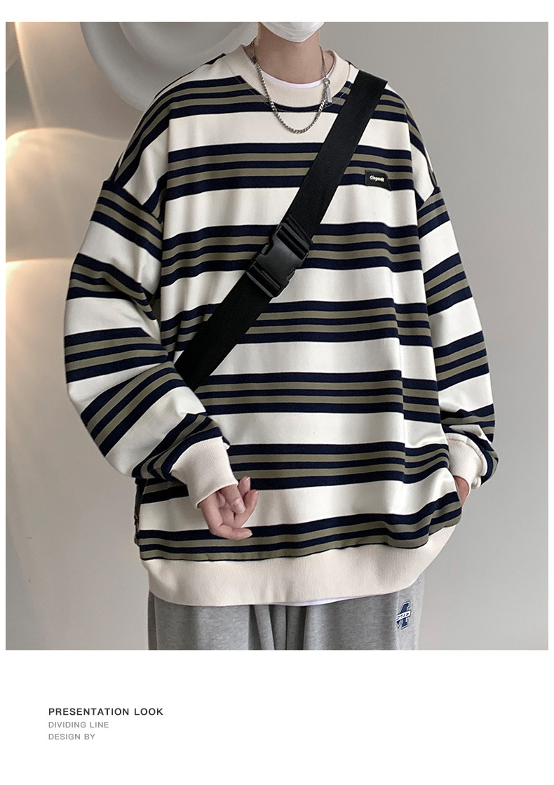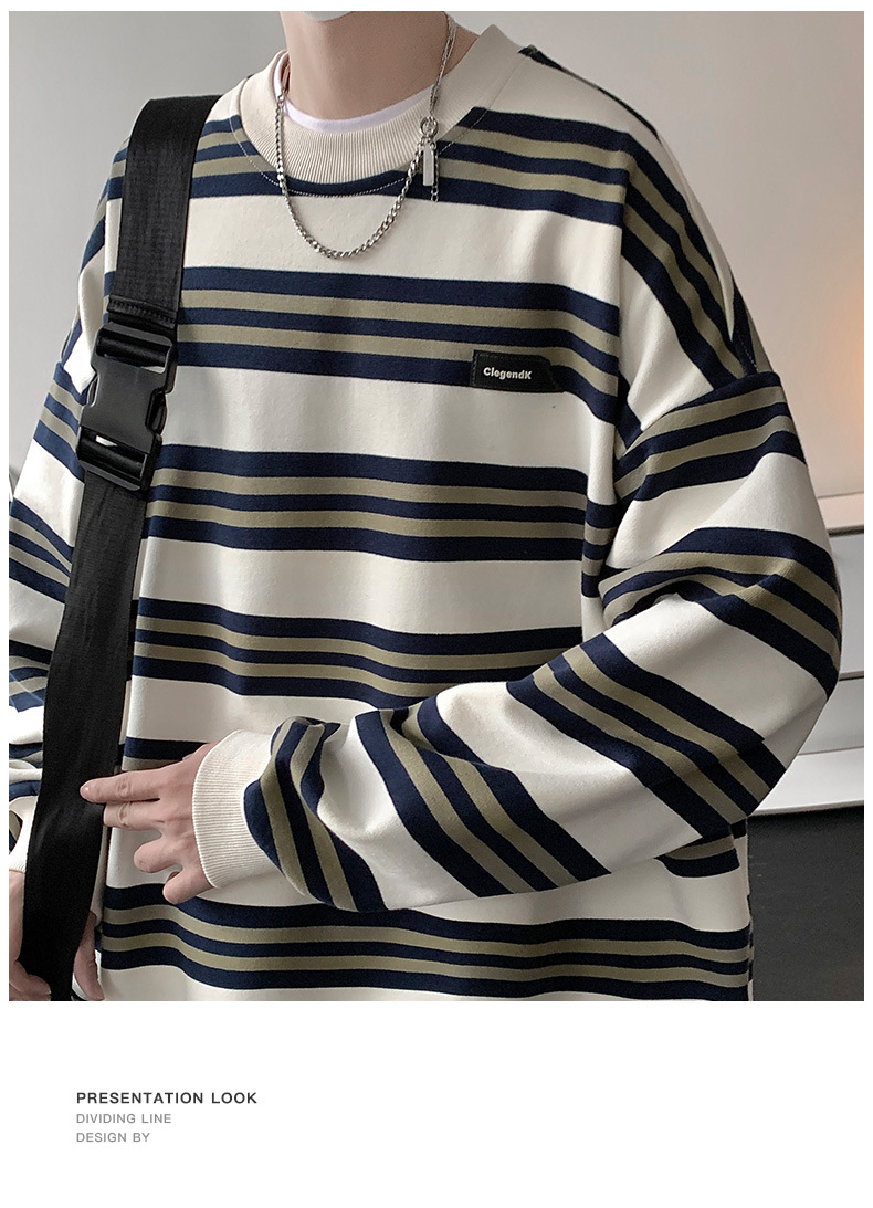 【GZ】无忧购日系条纹圆领潮流情侣长袖T恤打底衫23085-22003(截单后7天发货)25年清仓捡漏