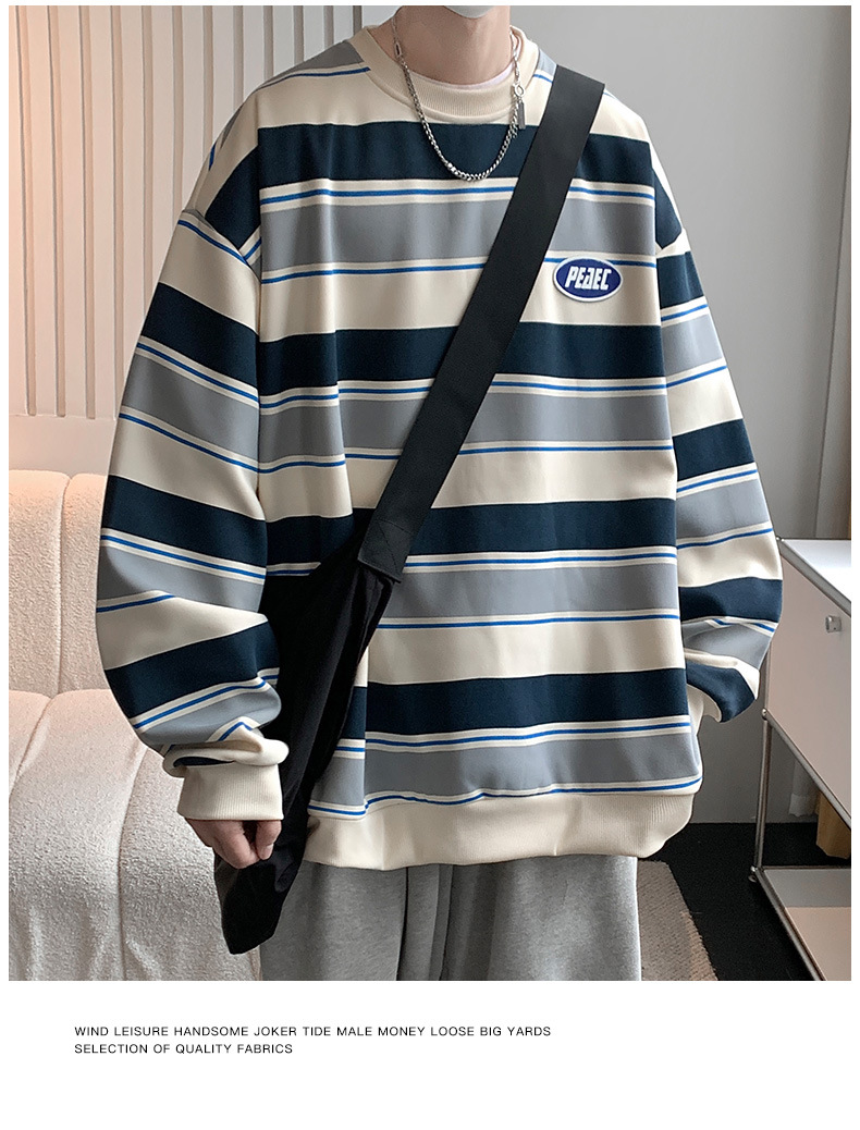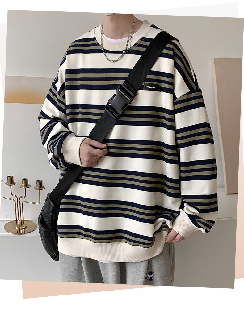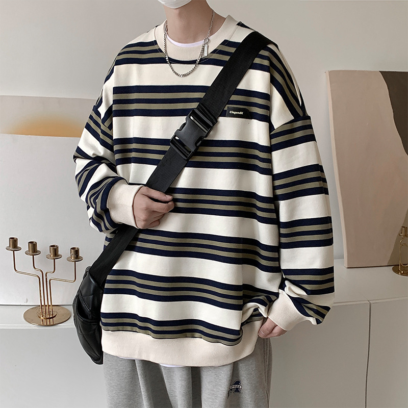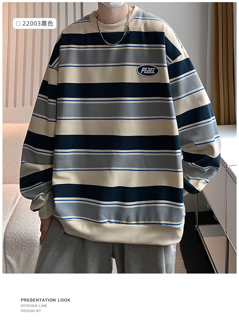 【GZ】无忧购日系条纹圆领潮流情侣长袖T恤打底衫23085-22003(截单后7天发货)25年清仓捡漏