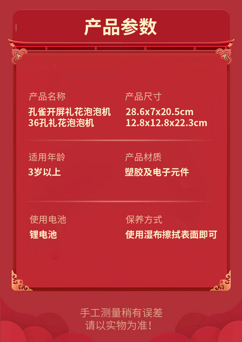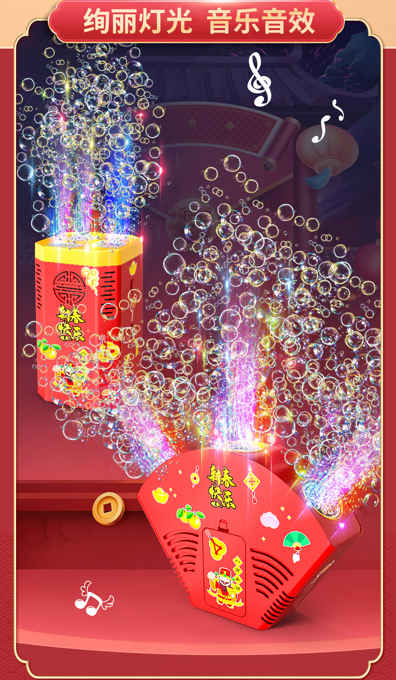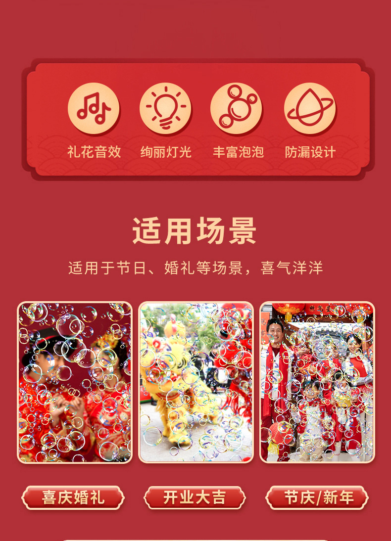 【一键出泡的礼花泡泡机】36孔大号充电款孔雀开屏烟花泡泡机 36孔全自动声光 新年春节烟火味~