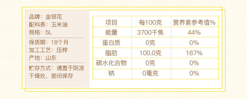 长寿花出品-盘中玉【现货速发】金银花玉米油5L餐饮食用油压榨限量特惠批发 金银花玉米油
