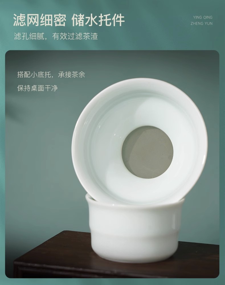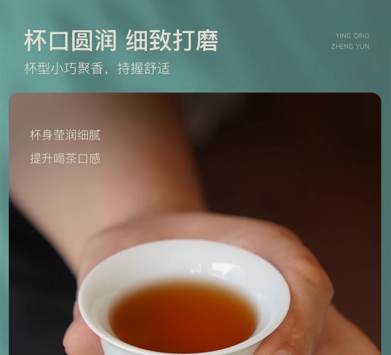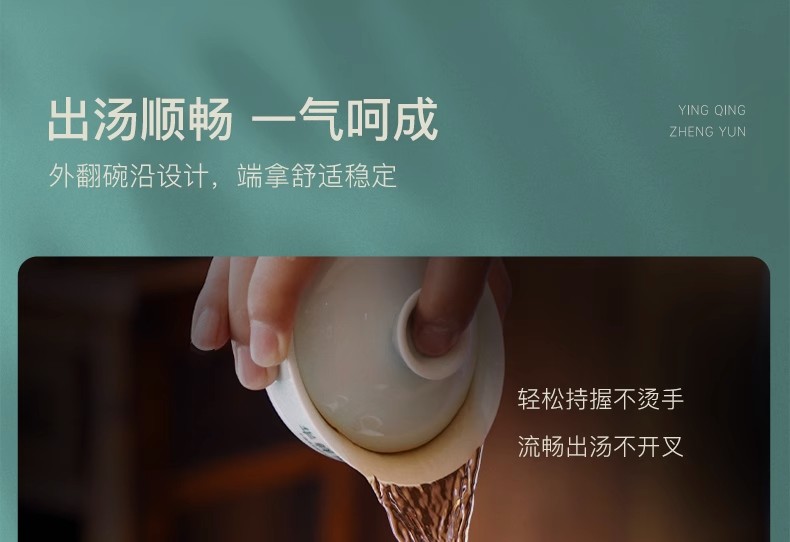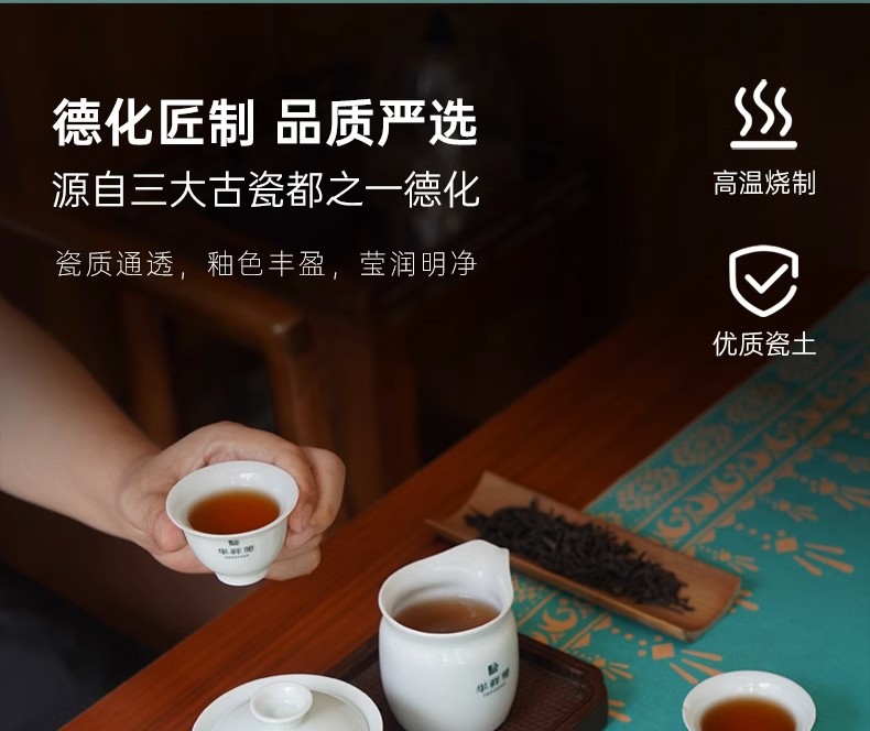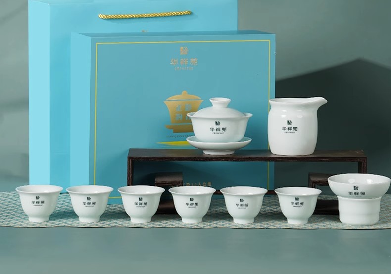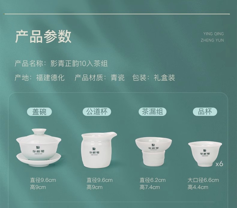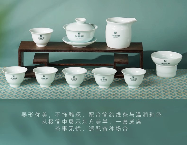 华祥苑-影青正韵茶组 陶瓷杯子泡茶专用杯盖碗茶杯套装家用简约