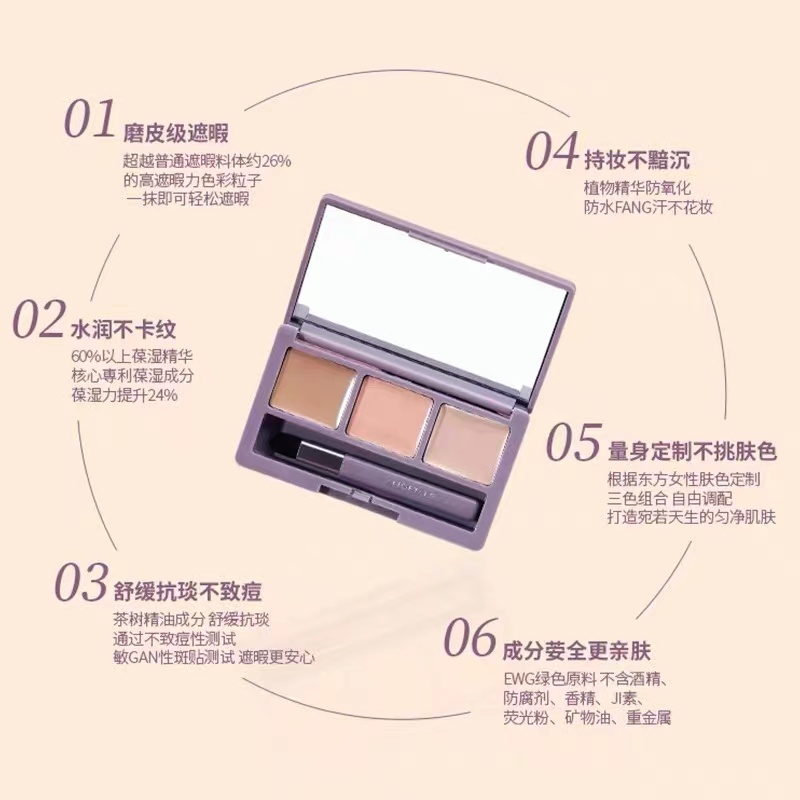 尔木萄三色遮瑕盘 遮暇膏 自然色遮盖黑眼圈斑点痘印修容女