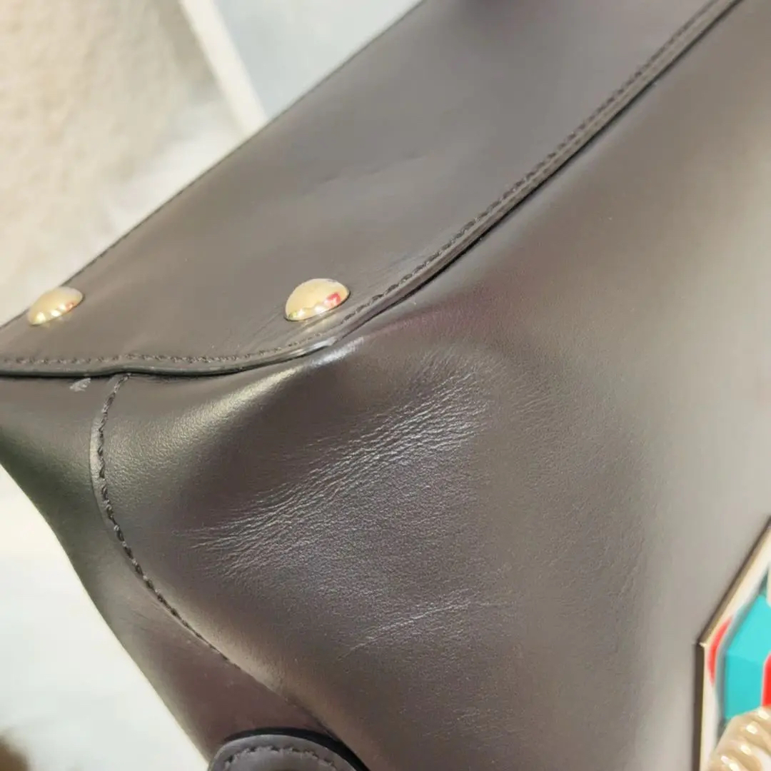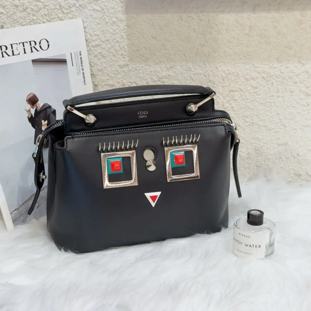 【商品详情】正品二手 芬迪 docom 小号 黑色 银扣 牛皮机器人拼图 斜挎包🍭97新 23*17 配件:肩带。可爱又重工