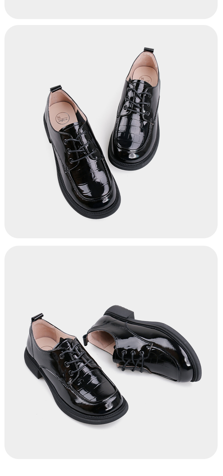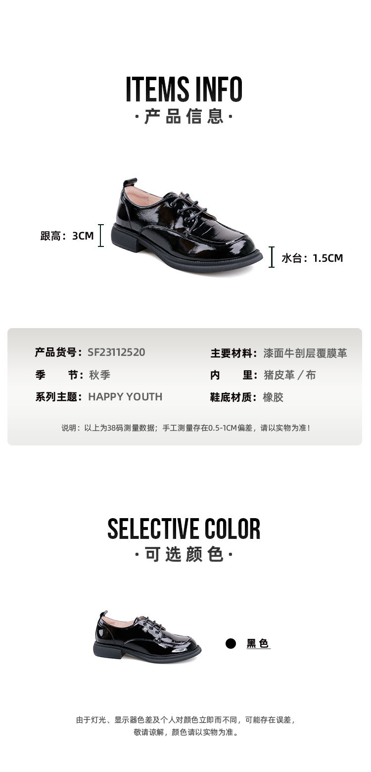 Safiya/索菲娅 女鞋2022年秋季新款英伦娃娃头百搭复古系带小皮鞋 SF23112520