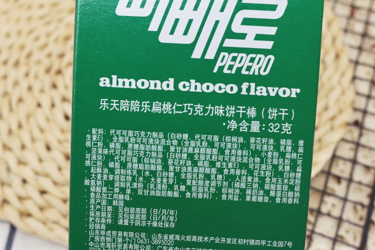 32g/盒 韩国乐天 陪陪乐 扁桃仁巧克力味饼干棒饼干 休闲零食蛋糕装饰饼干棒