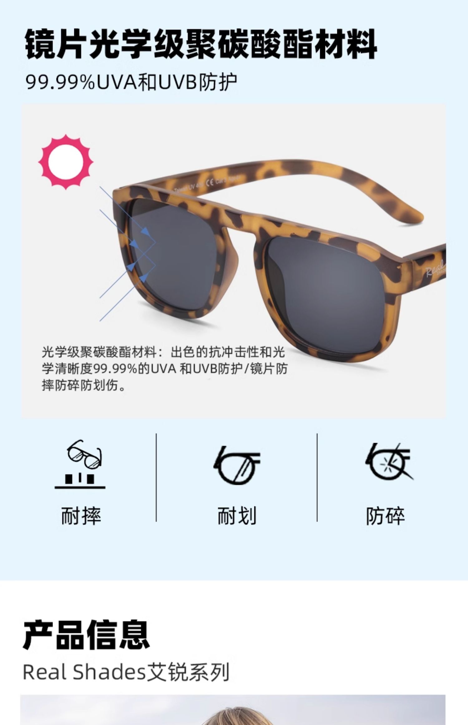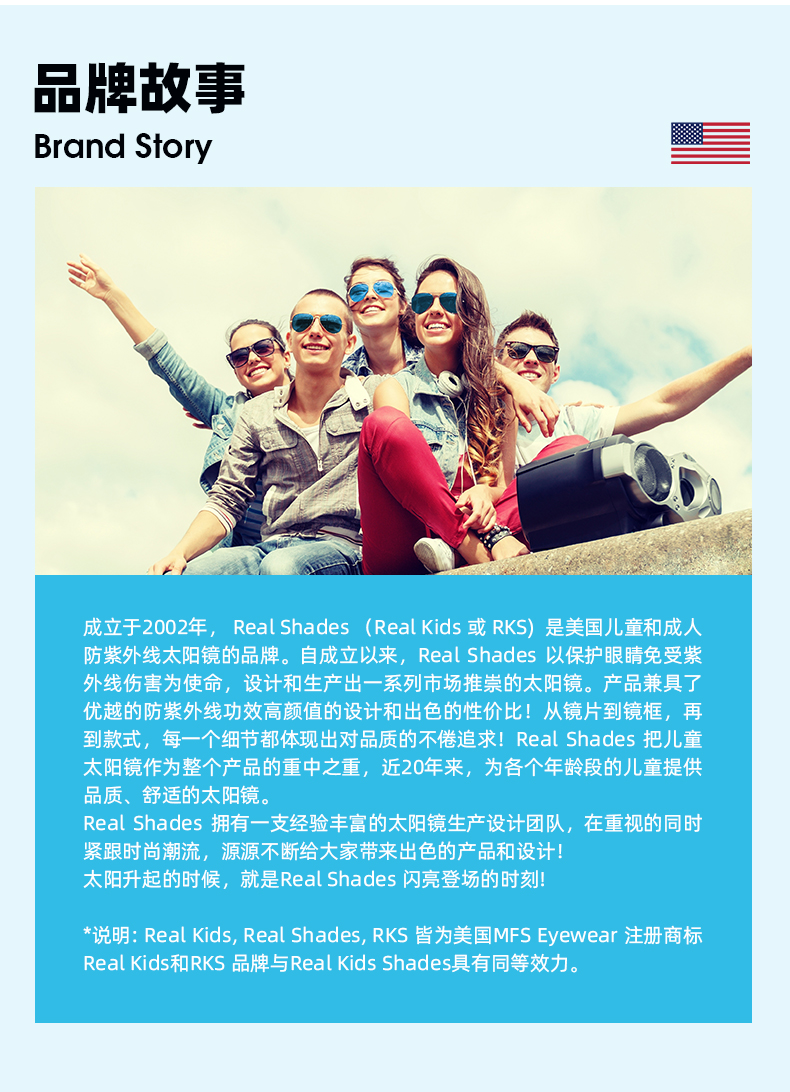 美国real shades艾锐儿童墨镜宝宝男女童太阳眼镜