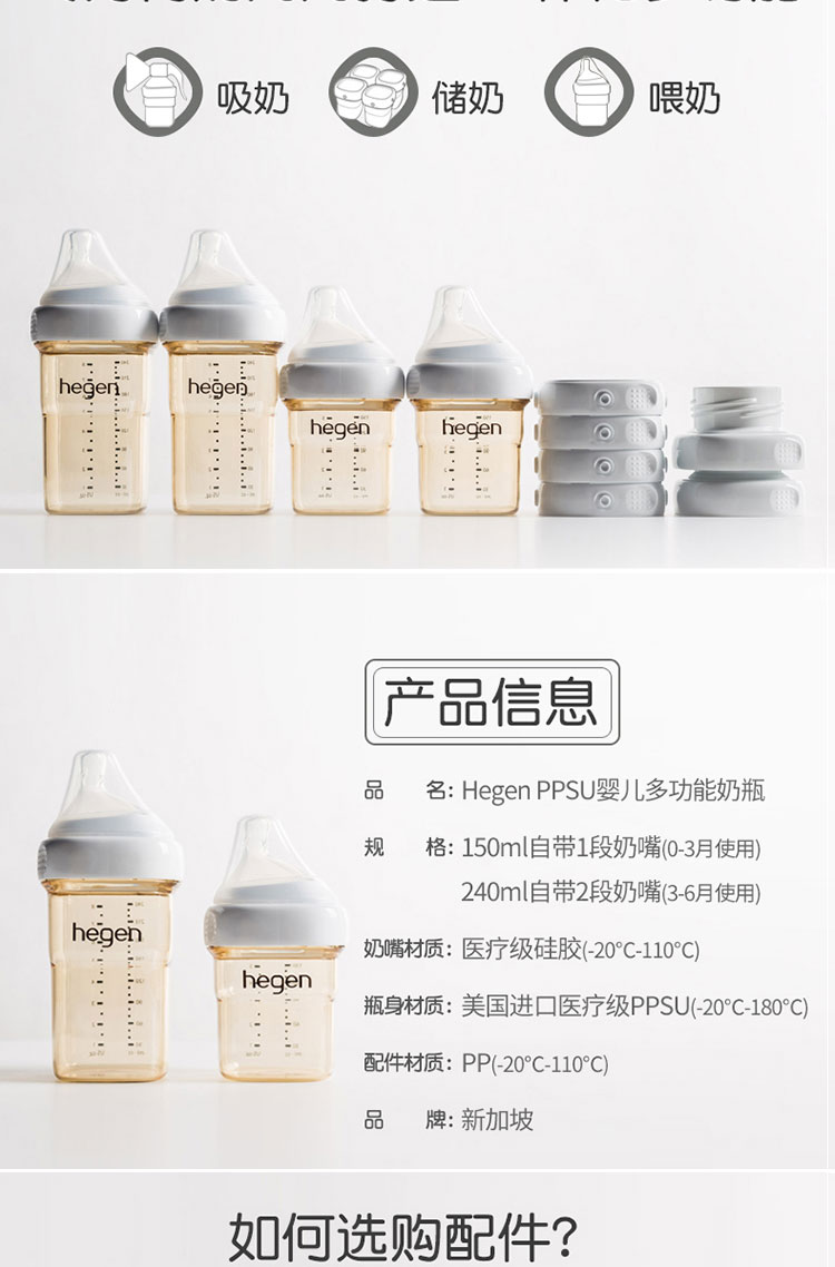 新加坡 Hegen 婴儿礼盒装绿色(奶瓶150ml+240ml+两个储存瓶盖))
