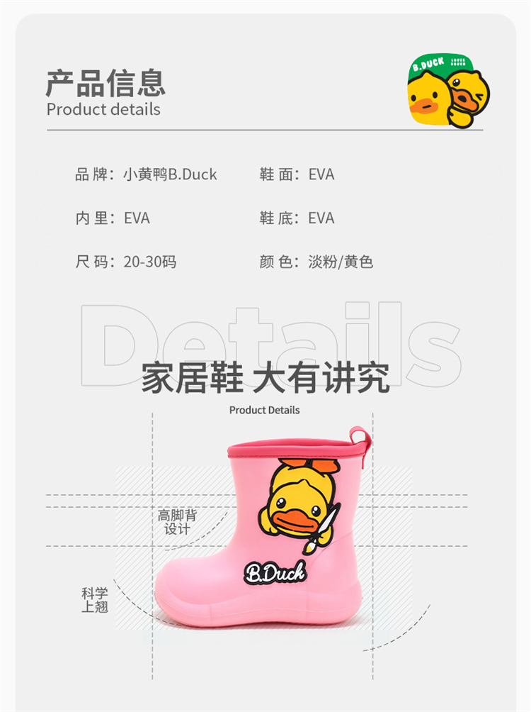 B.Duck小黄鸭童鞋四季儿童雨靴20-30 B2315521