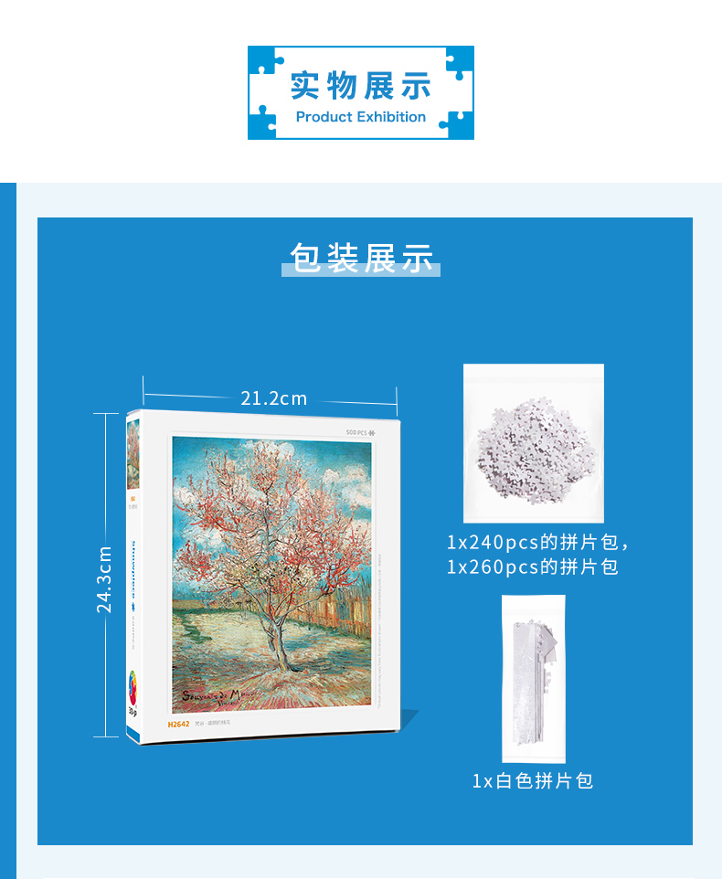 500片 平面拼图 塑料拼图 H2642 梵谷- 盛开的桃花