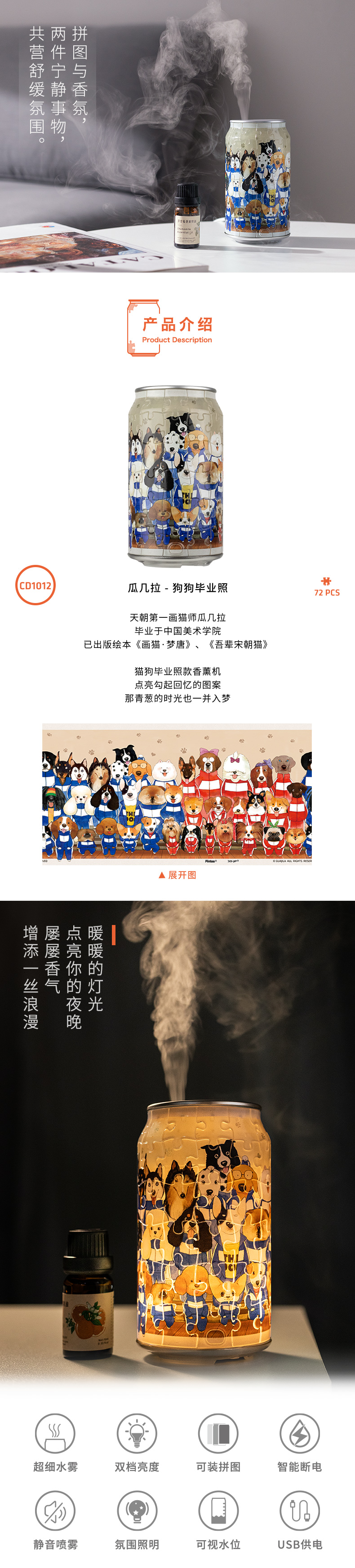 【折扣商品 】香薰机系列 CD1012 瓜几拉- 狗狗毕业照-精油为临期商品