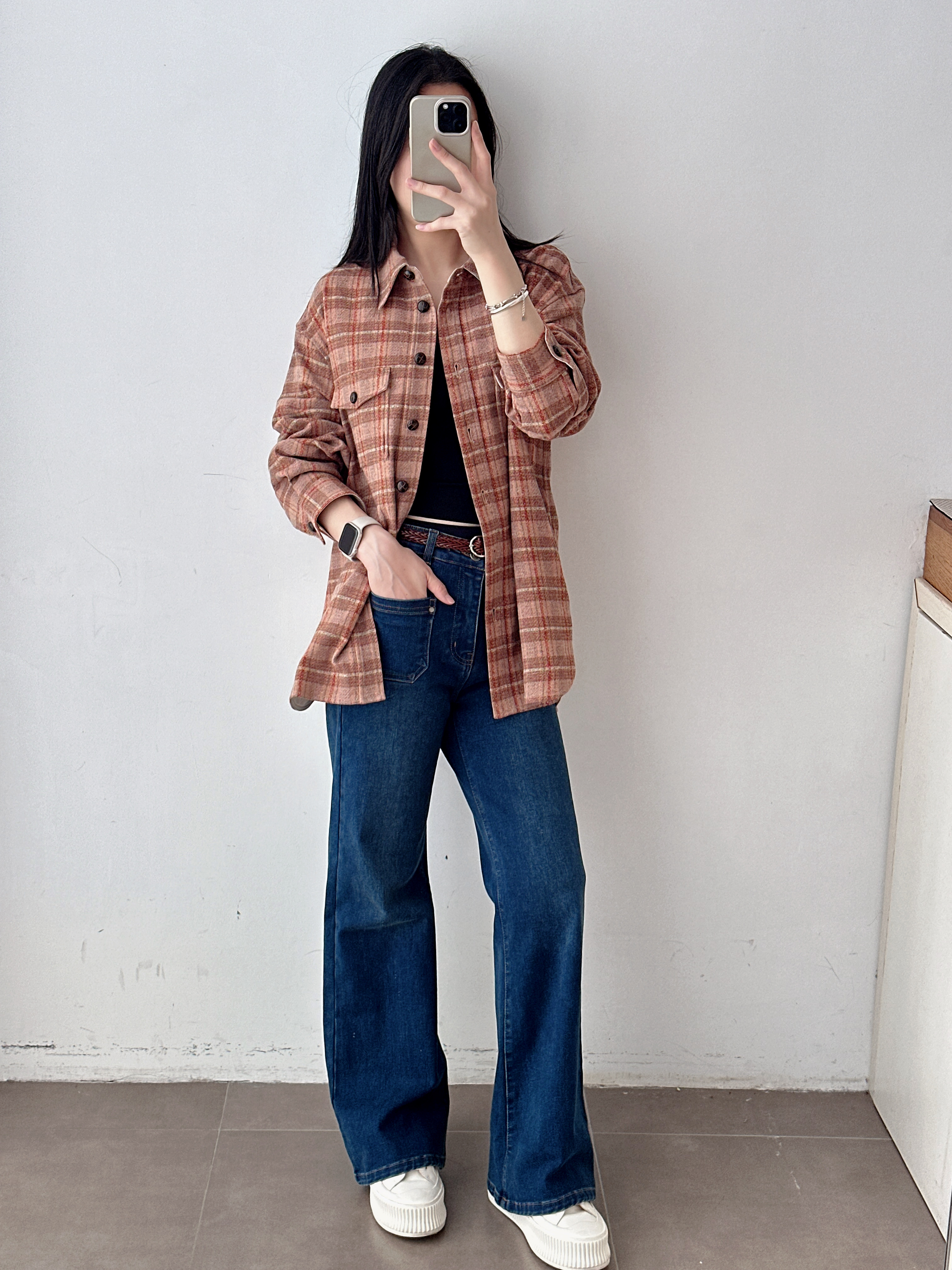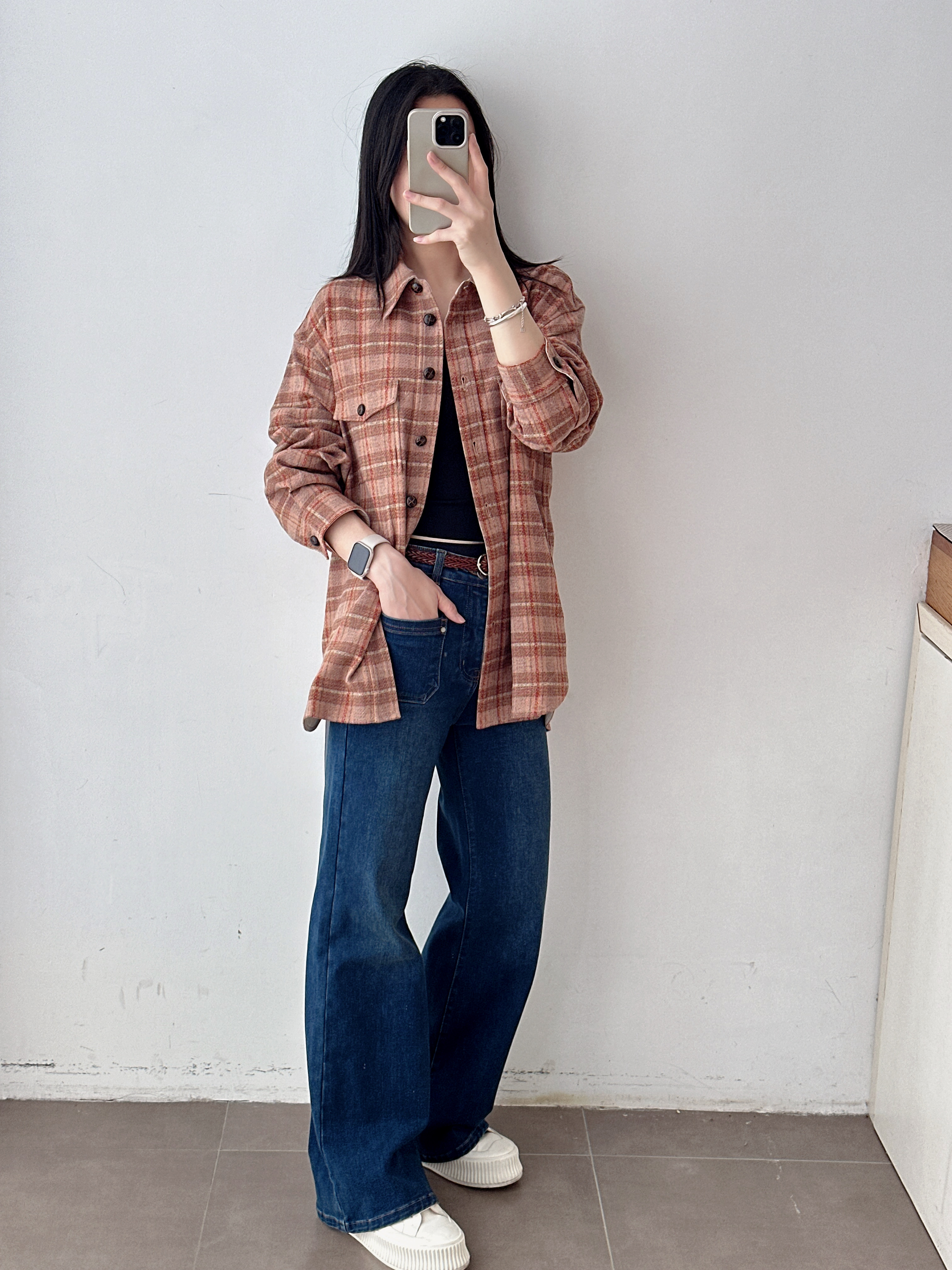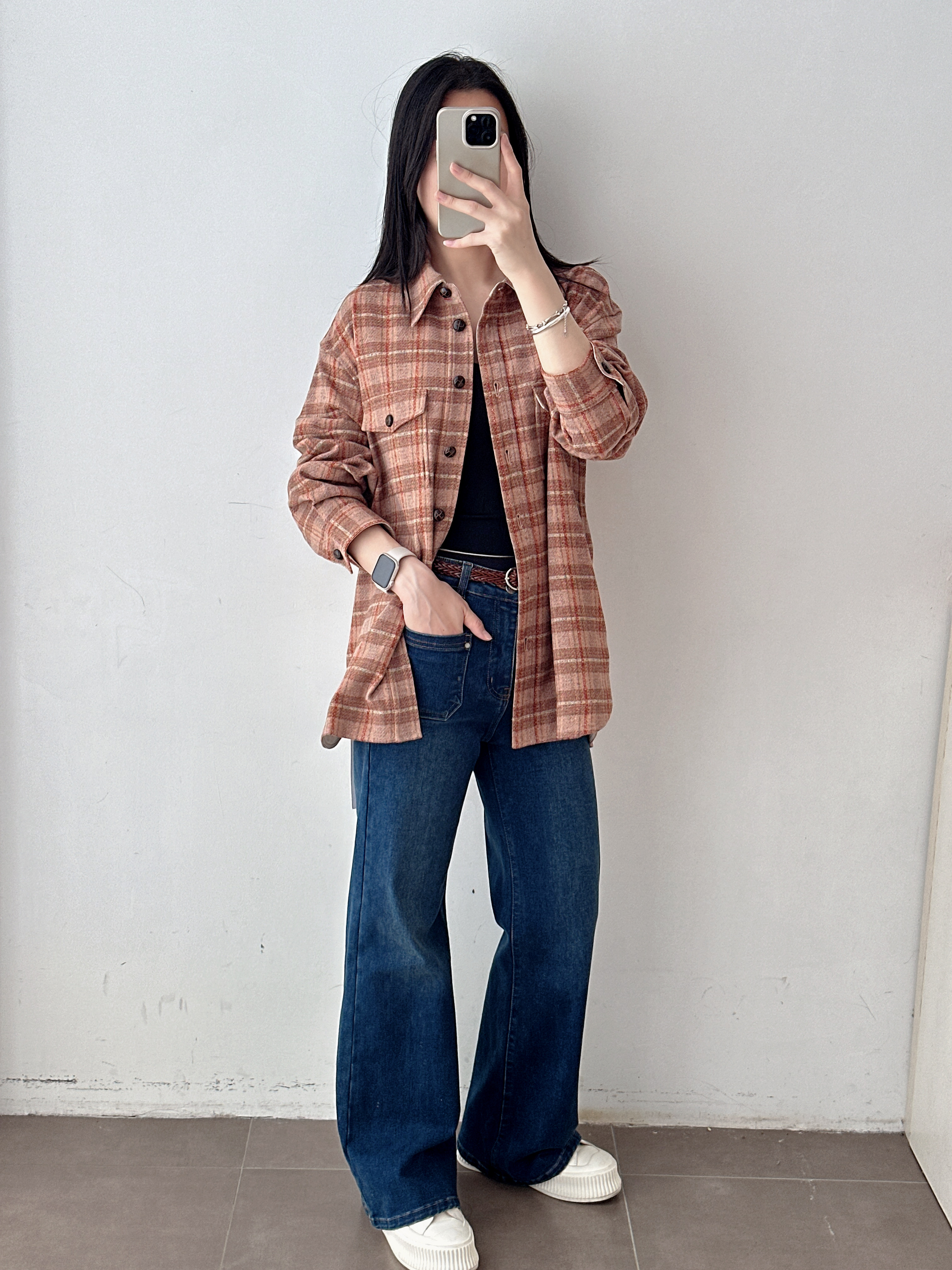 设计师款氛围感橘红格纹外套
