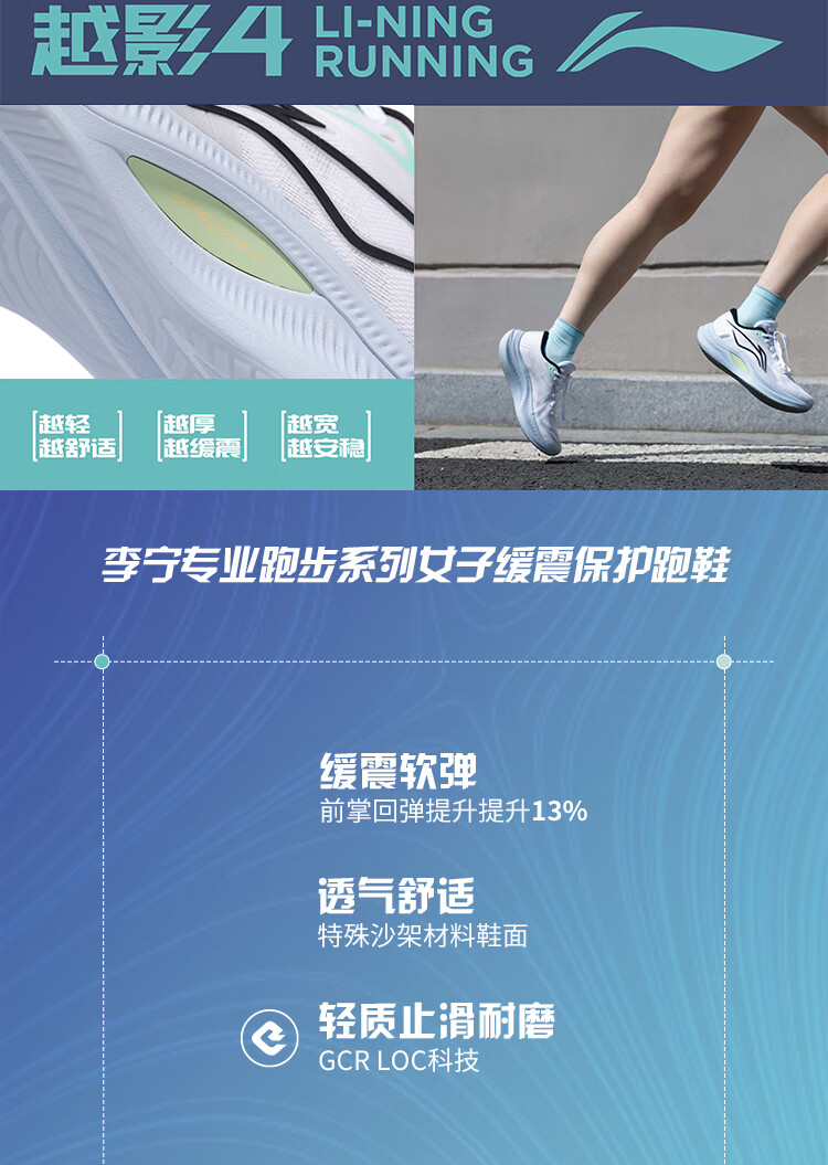 李宁越影4丨跑步鞋女网面透气秋季轻质缓震运动鞋ARHU022