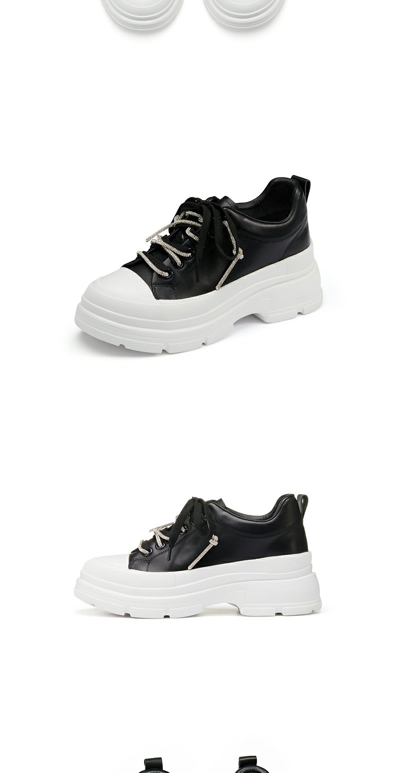 westory2022年春季新款真皮小白鞋厚底透气拼色时髦休闲鞋系带S22AM54611
