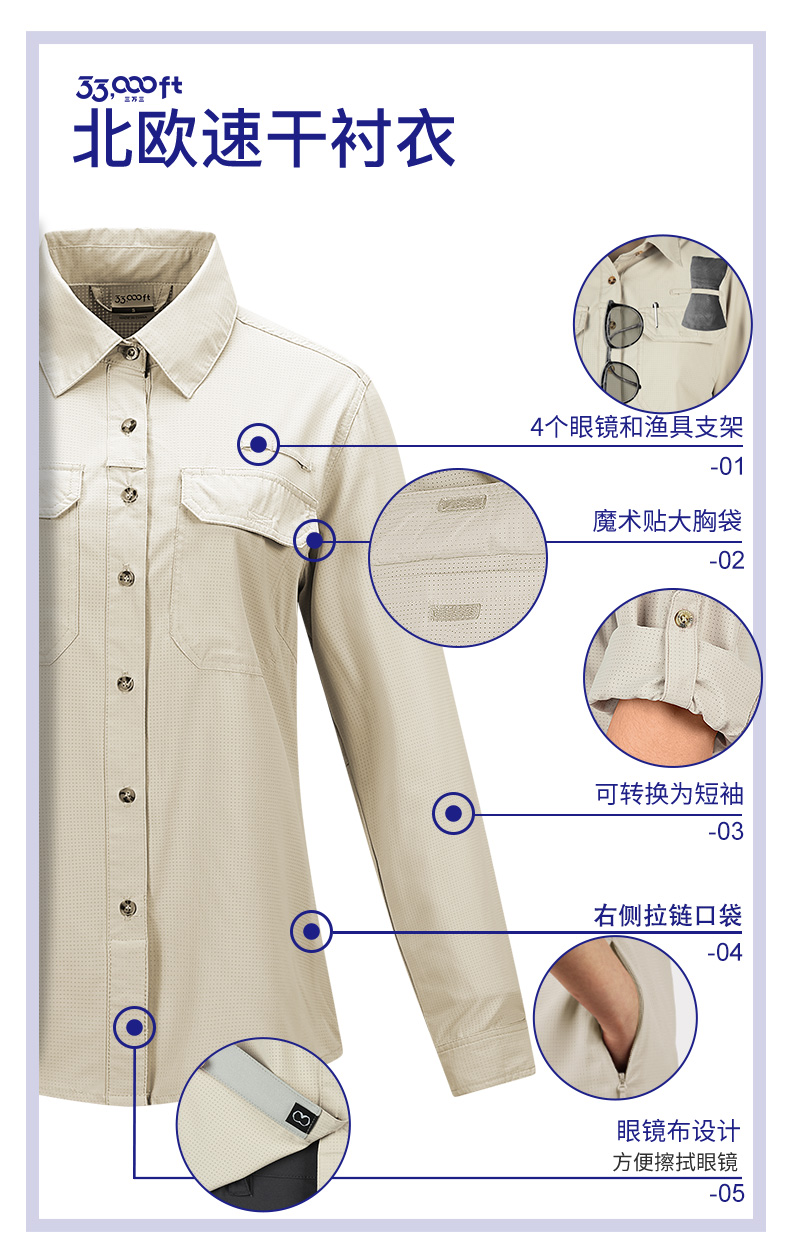 【ispo大奖面料】33000ft北欧户外速干衬衫女高透气徒步登山夏季长袖衬衣凉感大码