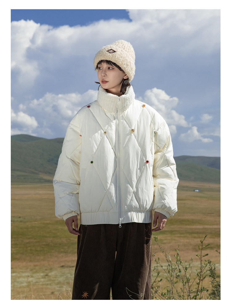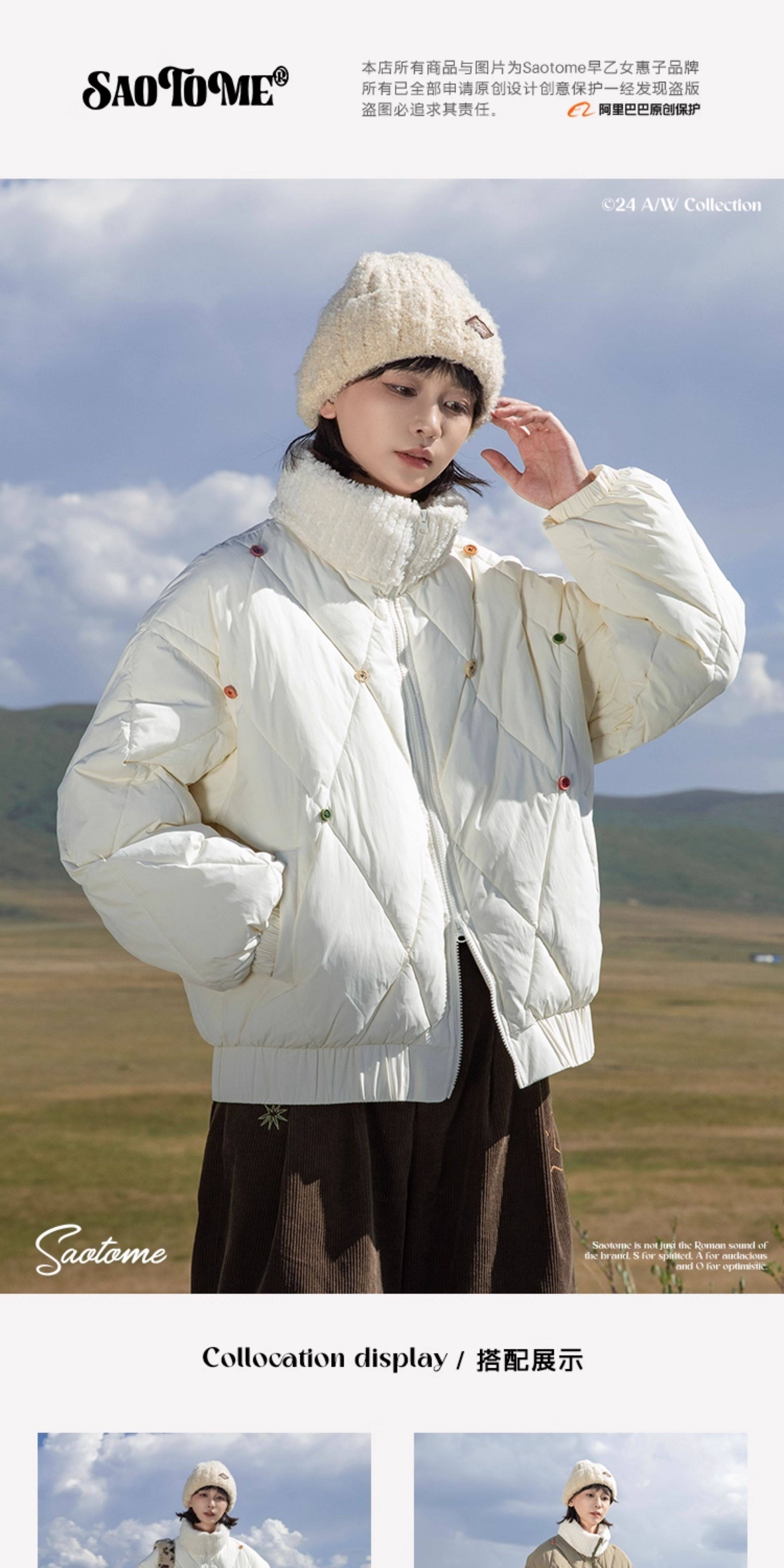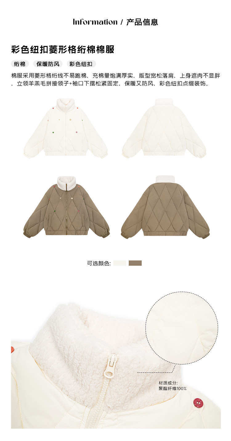 早乙女惠子saotome/STMMF244398/彩色纽扣菱形格绗棉棉服