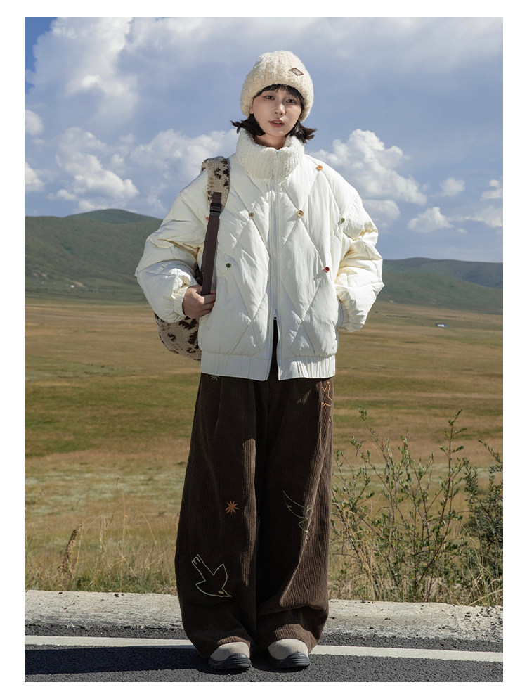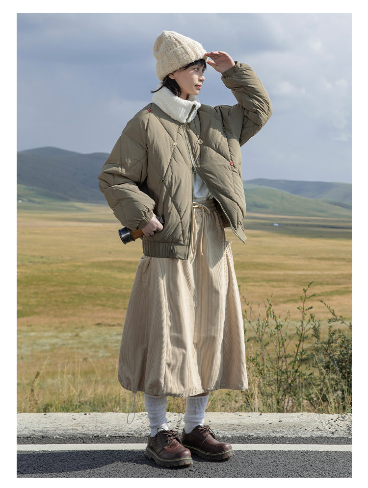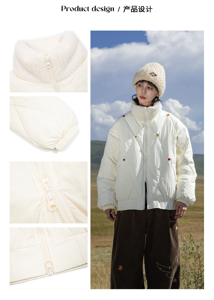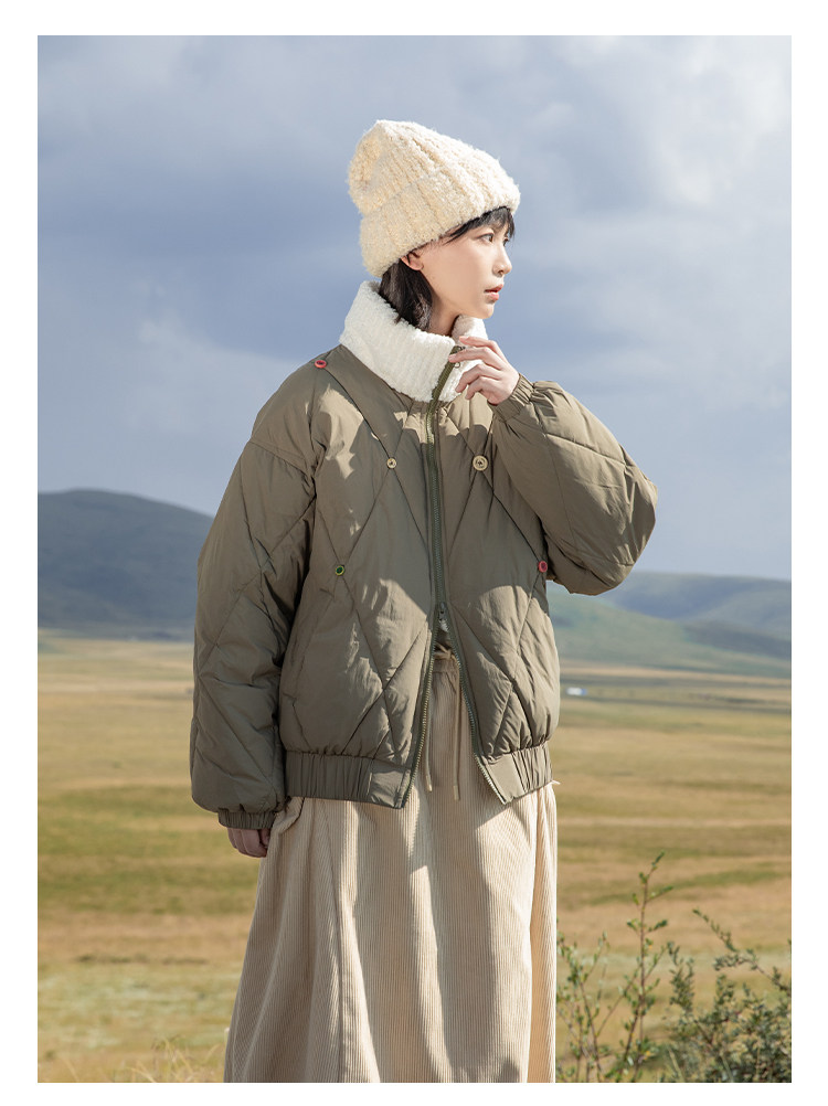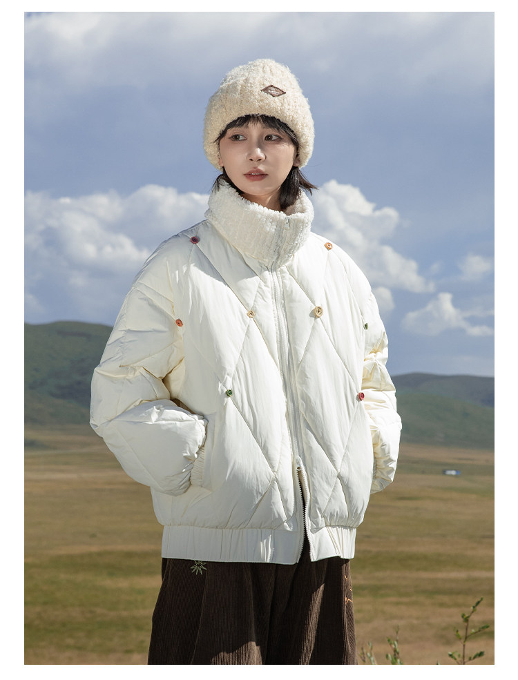 早乙女惠子saotome/STMMF244398/彩色纽扣菱形格绗棉棉服