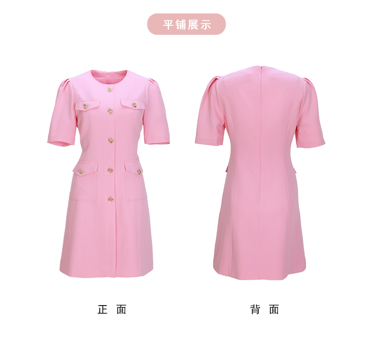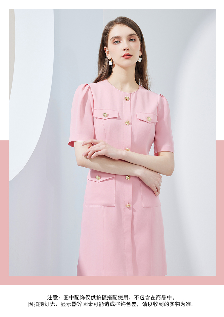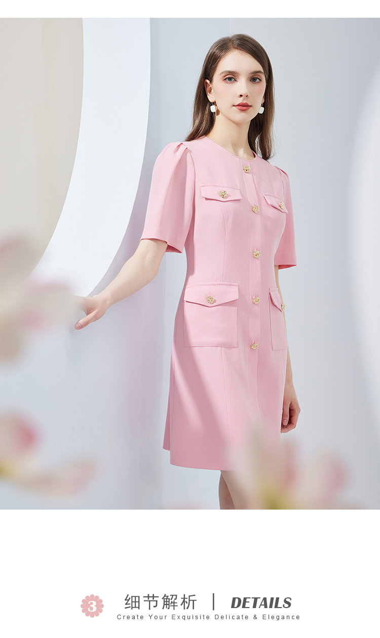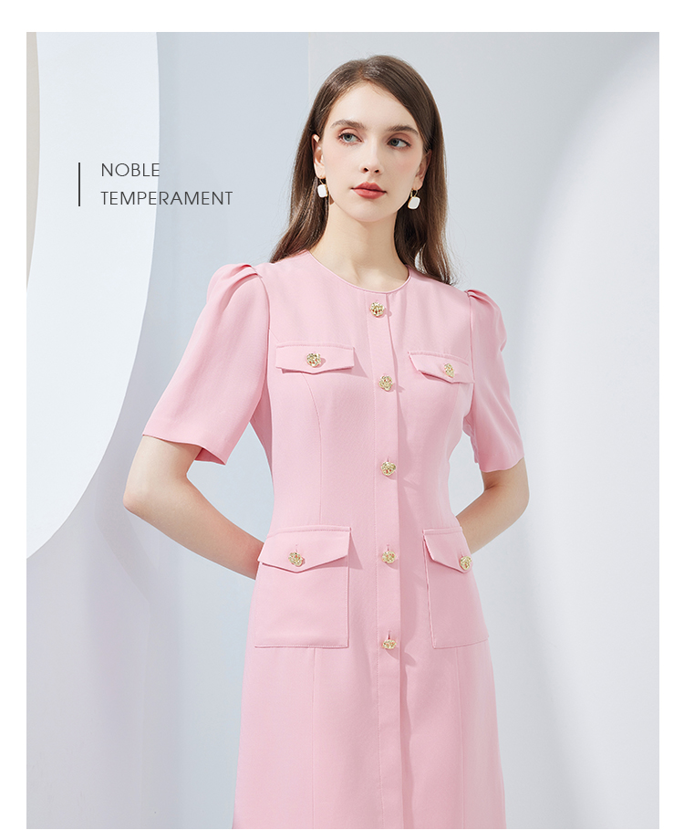 NF840斯尔丽瑟俪2023春夏新品圆领装饰口袋收腰大摆OL风连衣裙