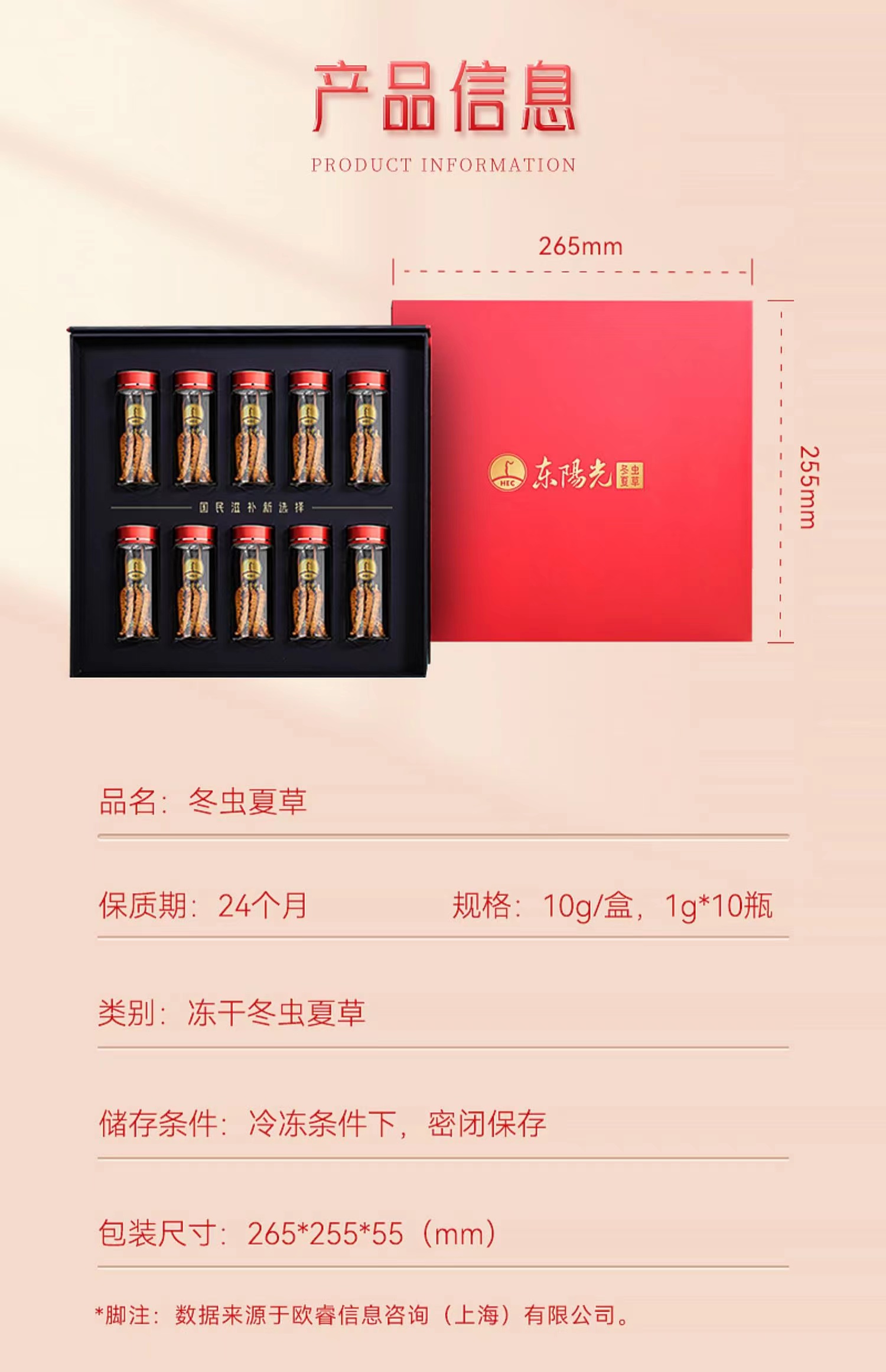 【上医养生滋补】东阳光冬虫夏草官方旗舰店正品冻干虫草10g补品干货礼盒装