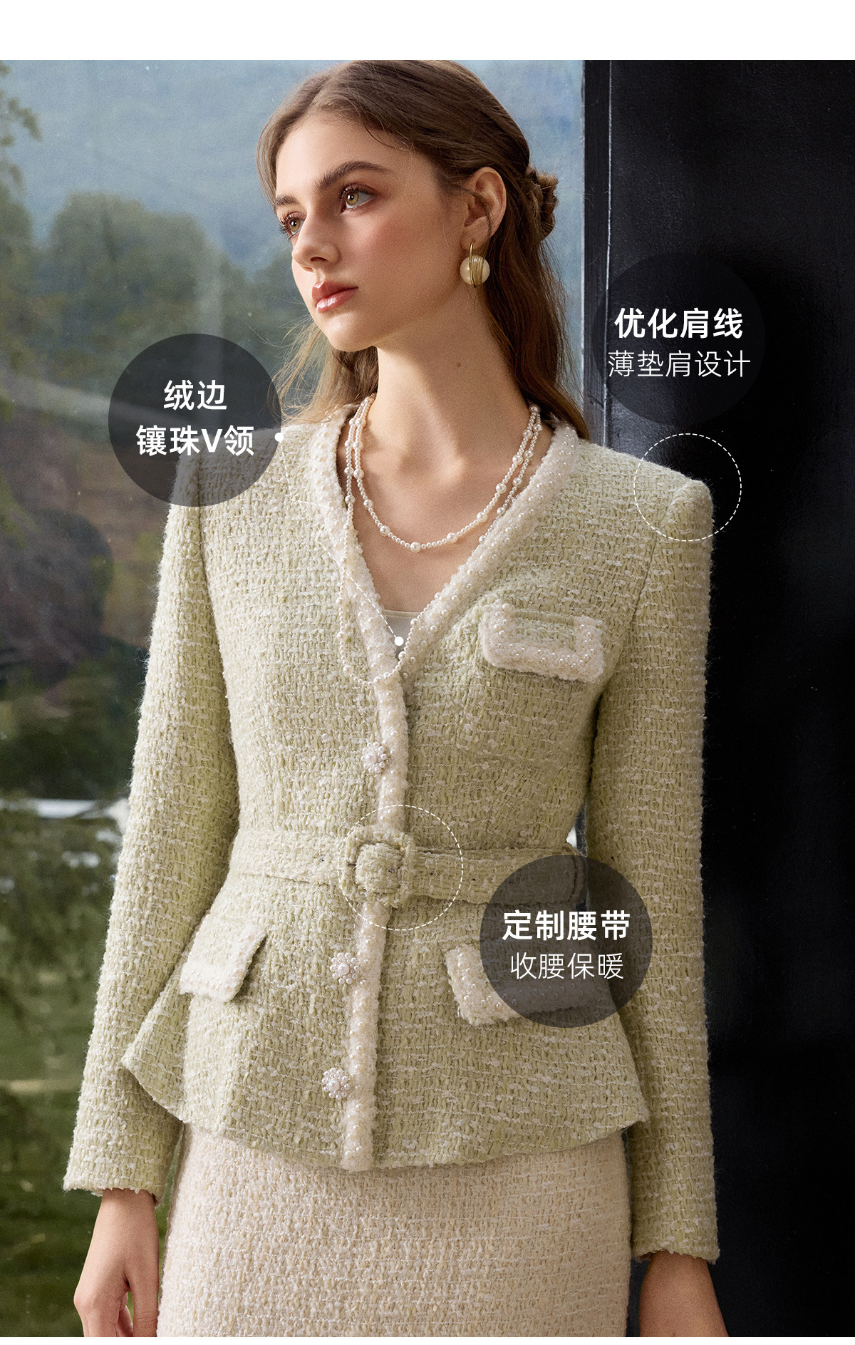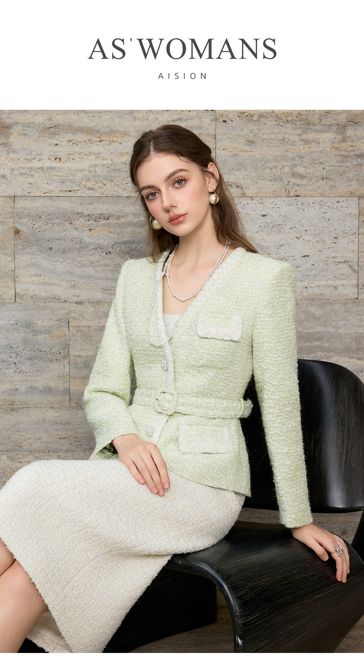 IWY/小香风浅绿色西装套裙女收腰显瘦通勤职业装气质穿搭25CS902
