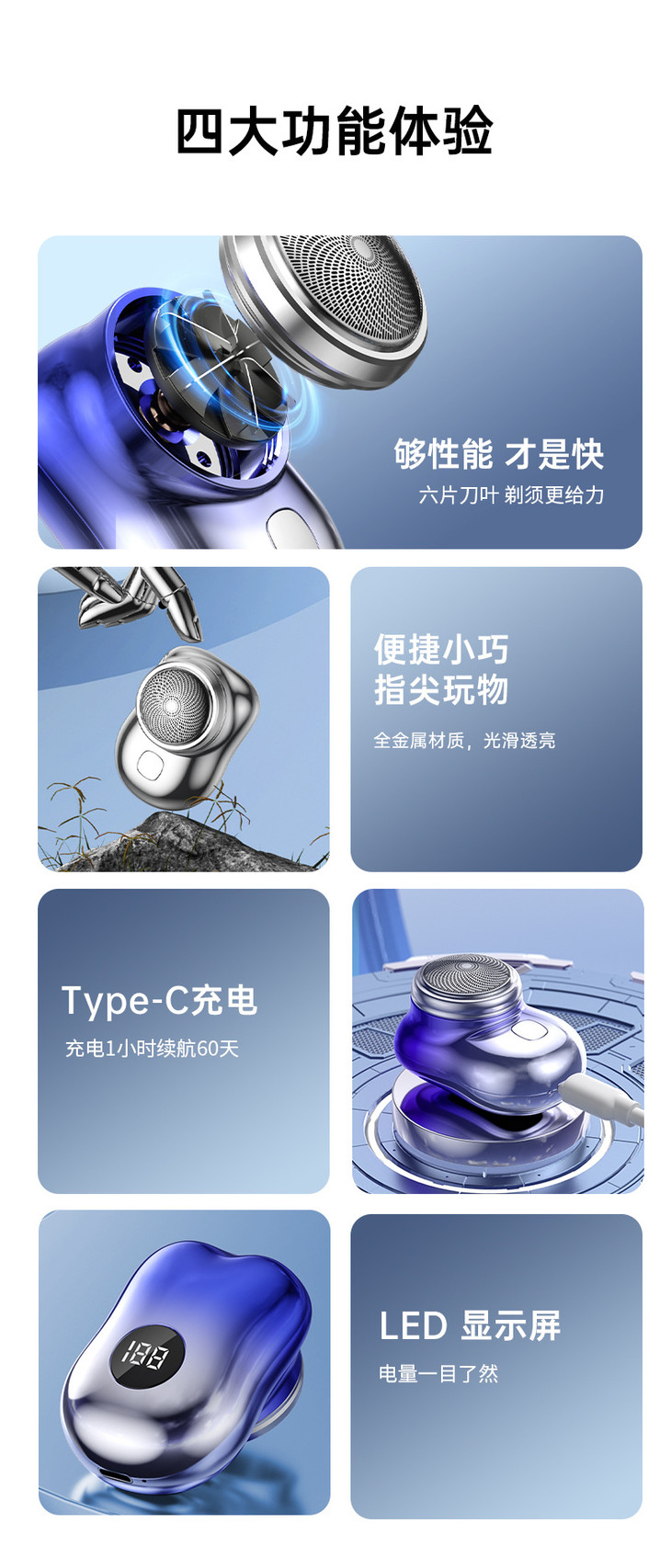 【小蛮腰剃须刀】二代MINIp10剃须刀 升级6叶刀片 LED显示屏 便携迷你充旅行电动剃须刀