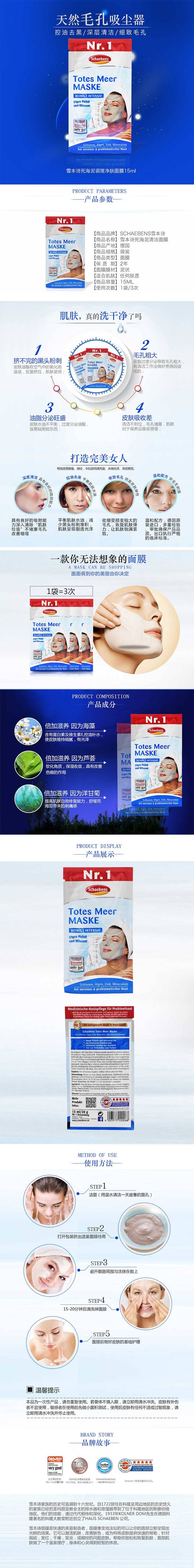 【荷兰直邮】 Schaebens雪本诗 死海泥清洁面膜 15ml 10片装