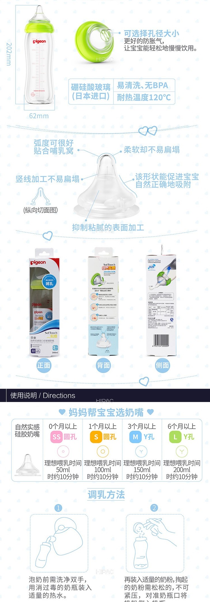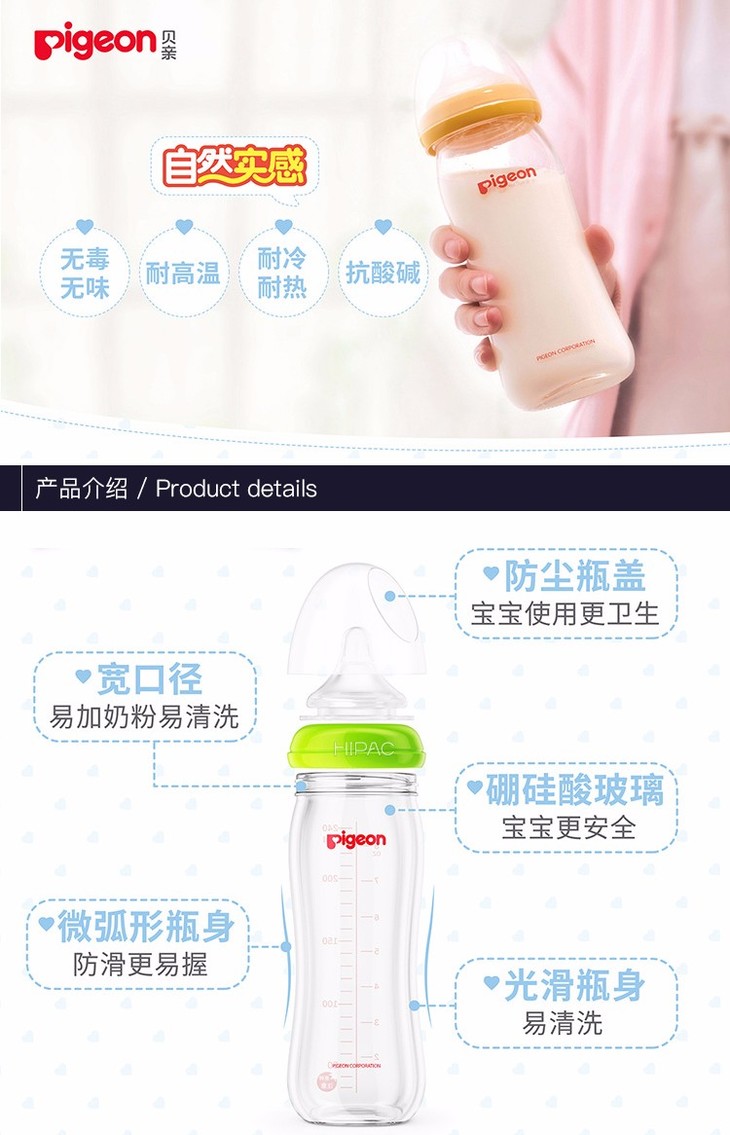 【一般贸易】Pigeon贝亲宽口径玻璃奶瓶240ml绿色AA70