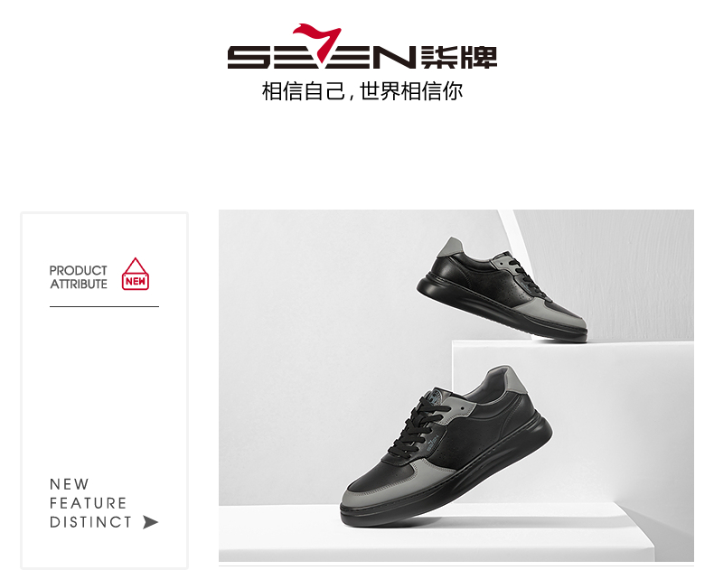 柒牌休闲鞋男士撞色拼接2024新款时尚潮流系带男生轻便舒适男鞋子 127X70370