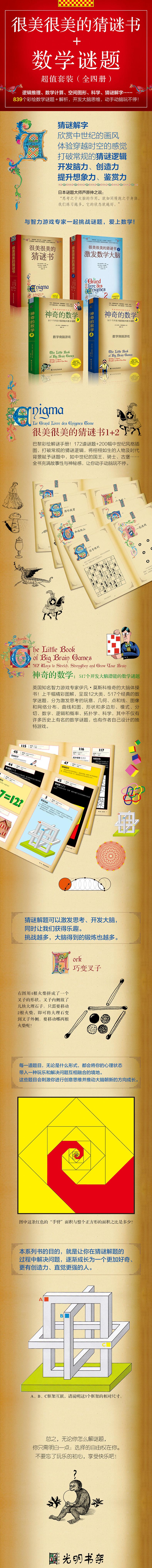 《很美很美的猜谜书2:激发数学大脑》:巴黎彩绘解谜手册!激发孩子数学兴趣入门书。150道谜题+中世纪风格插画+精雕细琢的图腾,有逻辑推理、数学计算、空间图形、猜谜解字。你可以从中世纪的国王、圆桌骑士、建筑师、数学家、云游诗人、地主的神秘故事中解答各种好玩的谜题,开发数学思维和创造力。