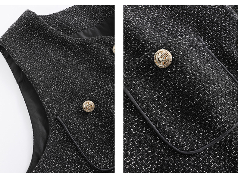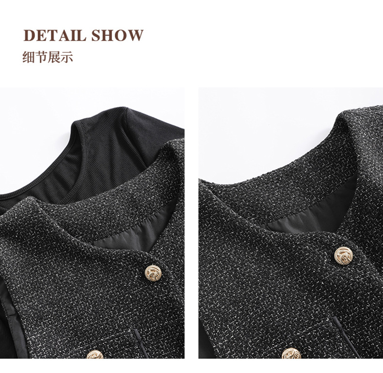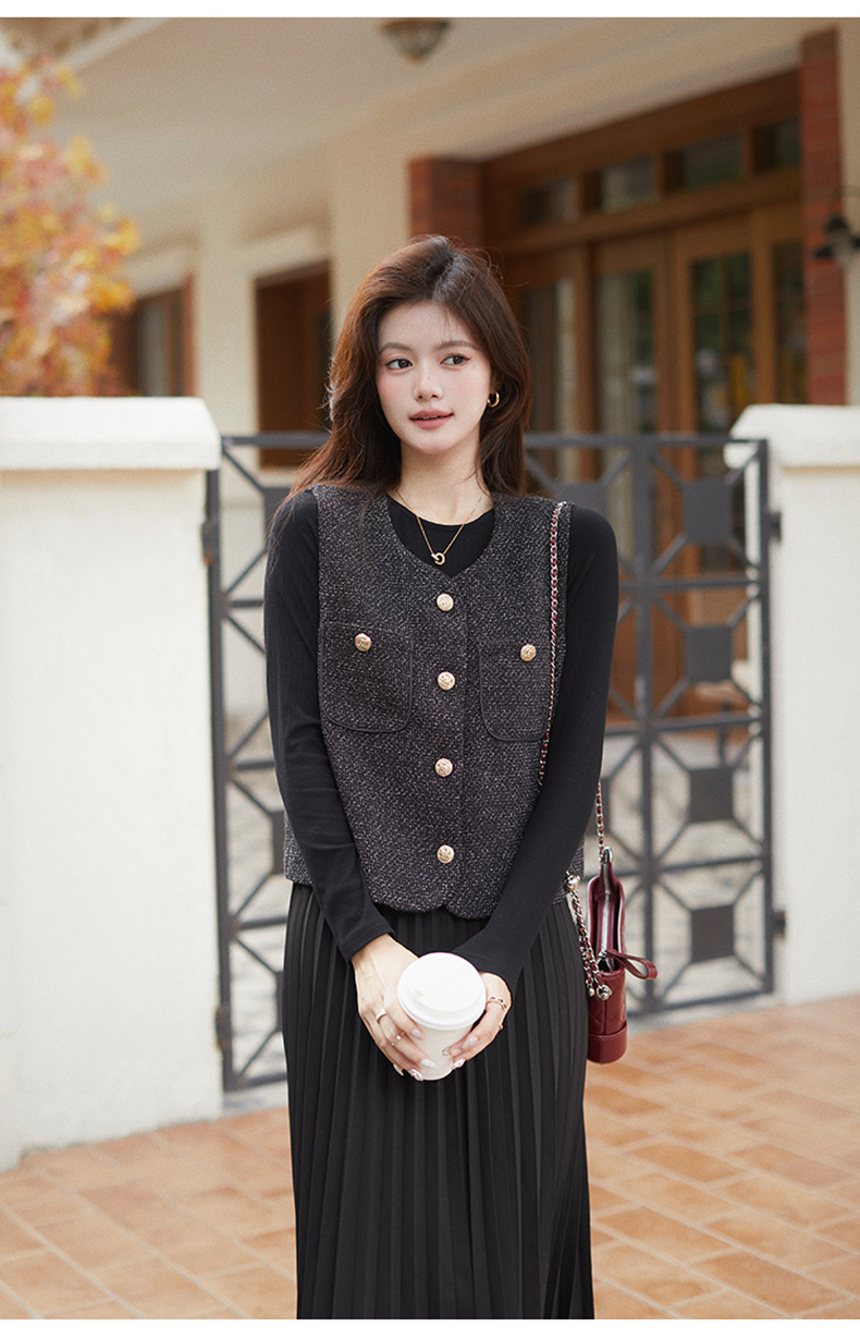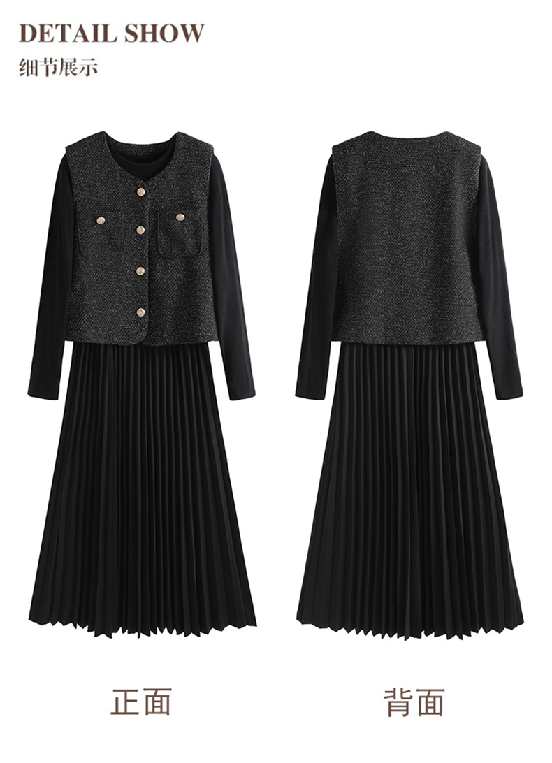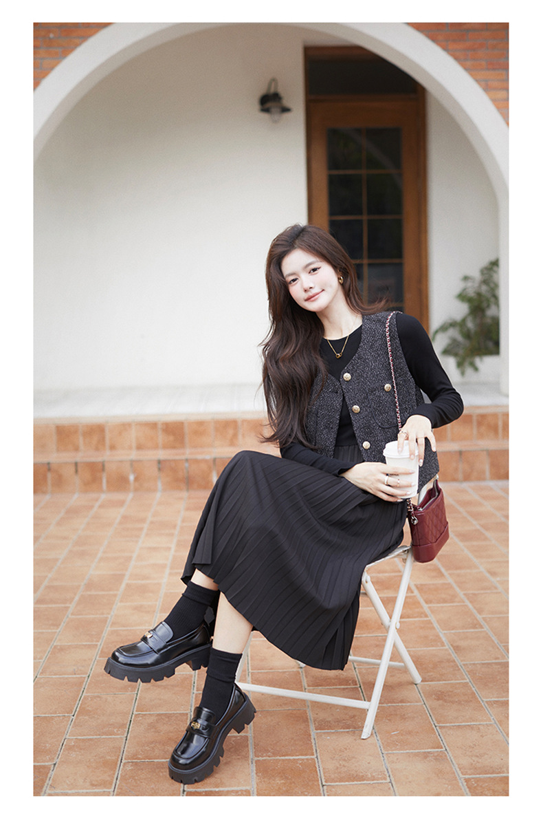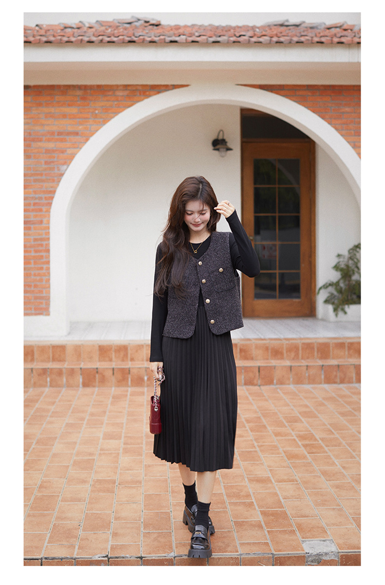 秋季新款法式氛围感小香风马甲背心气质百褶连衣裙套装HR-AIMI29998