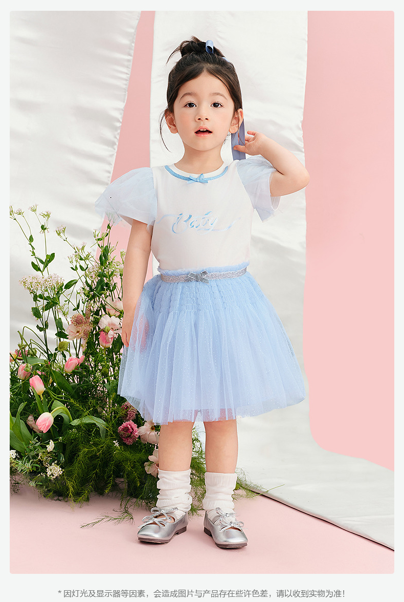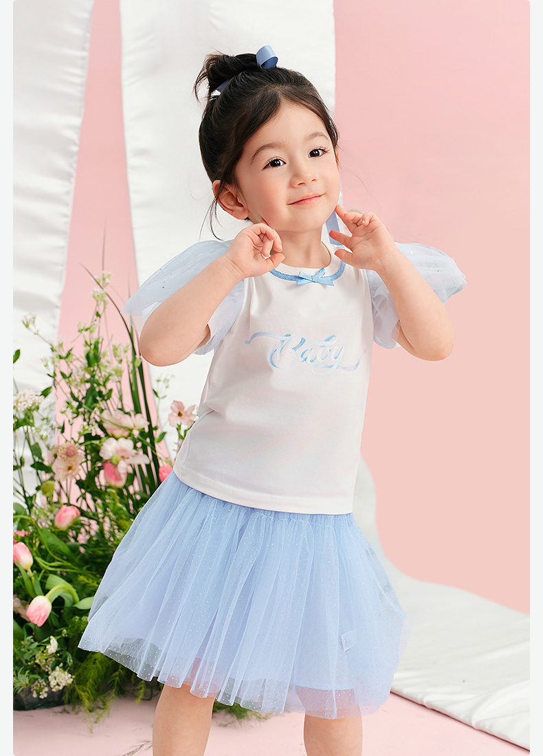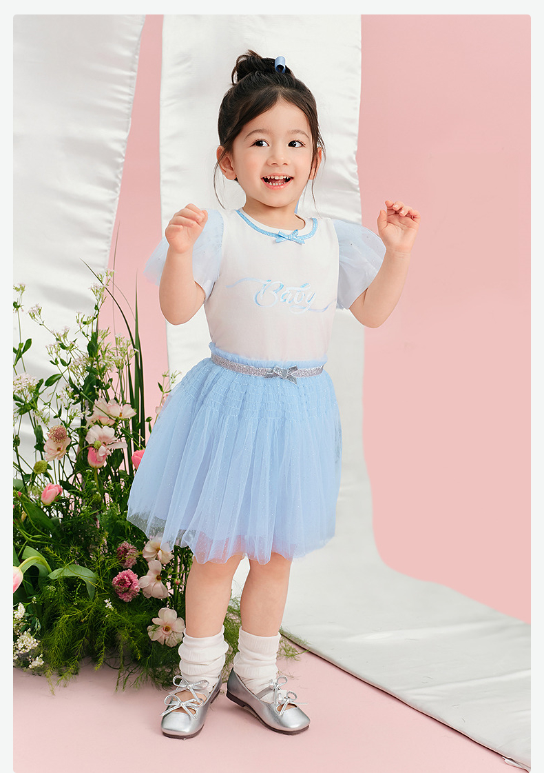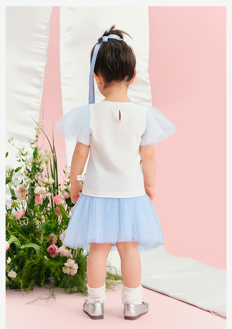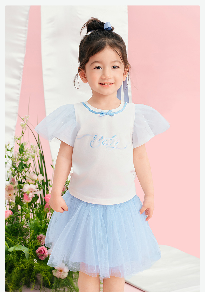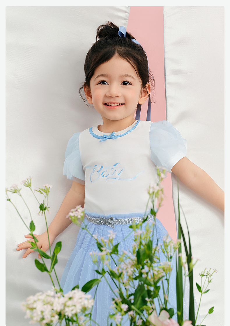 笛莎/Deesha 松饼熊2026年夏季新款童装女童甜美可爱趣味绣花翻领短袖T恤